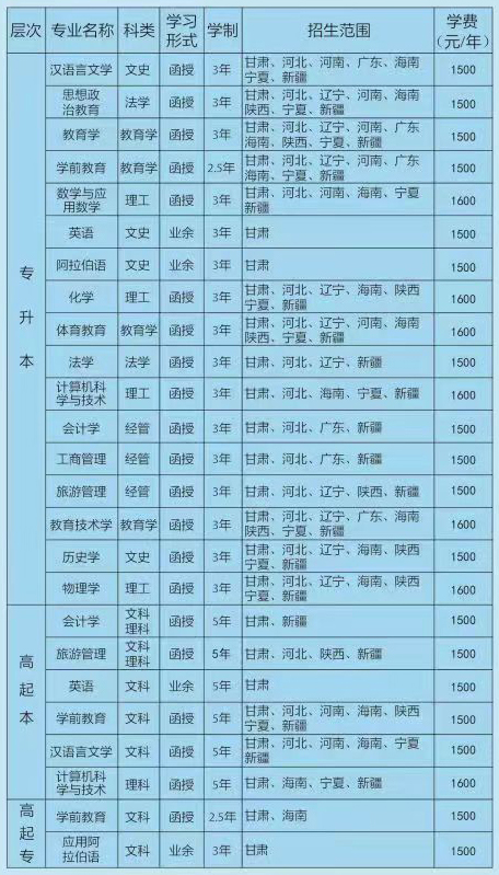 西北师范大学2022年高等学历继续教育收费标准