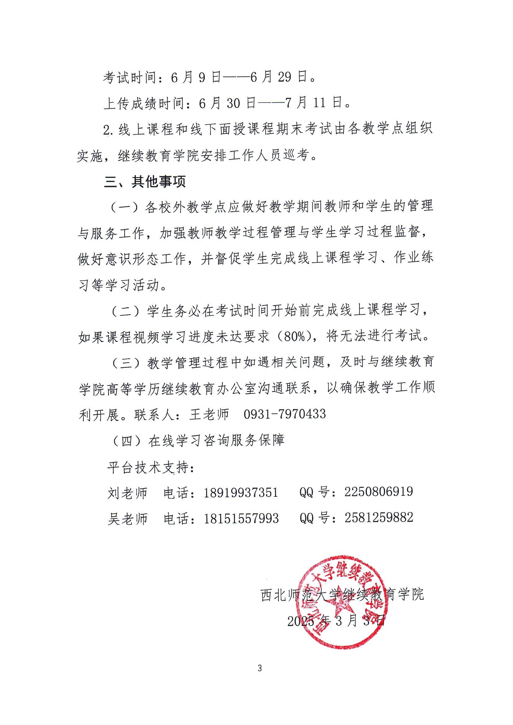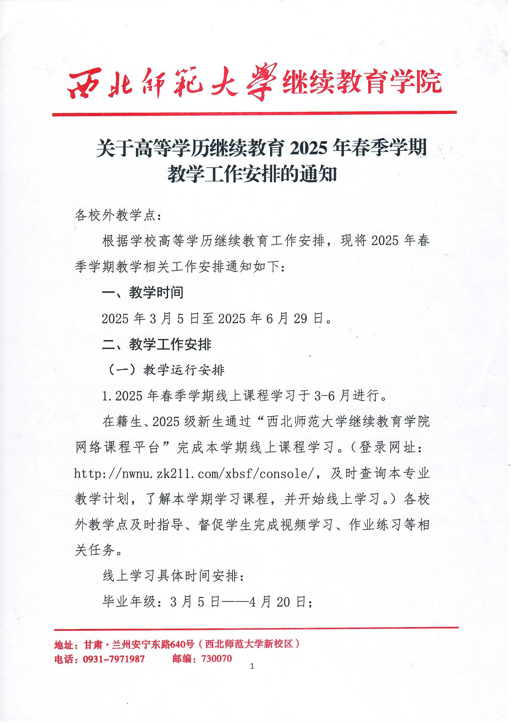 西北师范大学关于高等学历继续教育2025年春季学期教学工作安排的通知