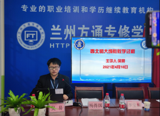 西北师范大学继续教育学院院长、硕士研究生导师李宝麟教授,西北师范大学继续教育学院副院长、硕士研究生导师杨得国教授,兰州方通专修学校联合党支部书记、方通学校校长仇宏伟,以及方通学校函授站全体教职工,2021级新生参加了线上开学典礼。典礼由兰州方通专修学校成教部兼办公室主任张海燕主持。