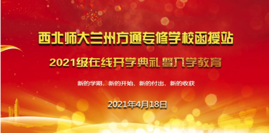 四月是万物复苏的季节,在这多彩的四月,我们怀着新希望迎来了新同学。4月18日上午,西北师范大学继续教育学院兰州方通专修学校函授站在线上成功举行了2021级新生开学典礼。