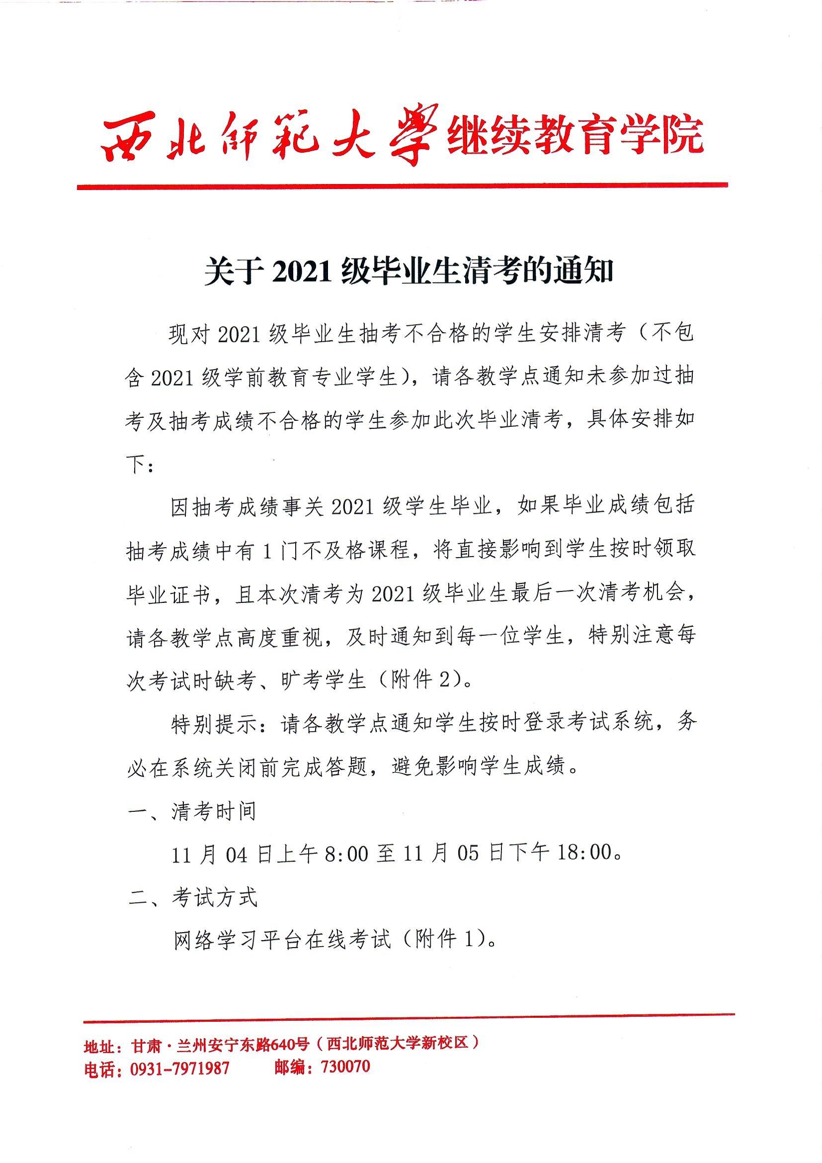 关于2021级毕业生清考的通知