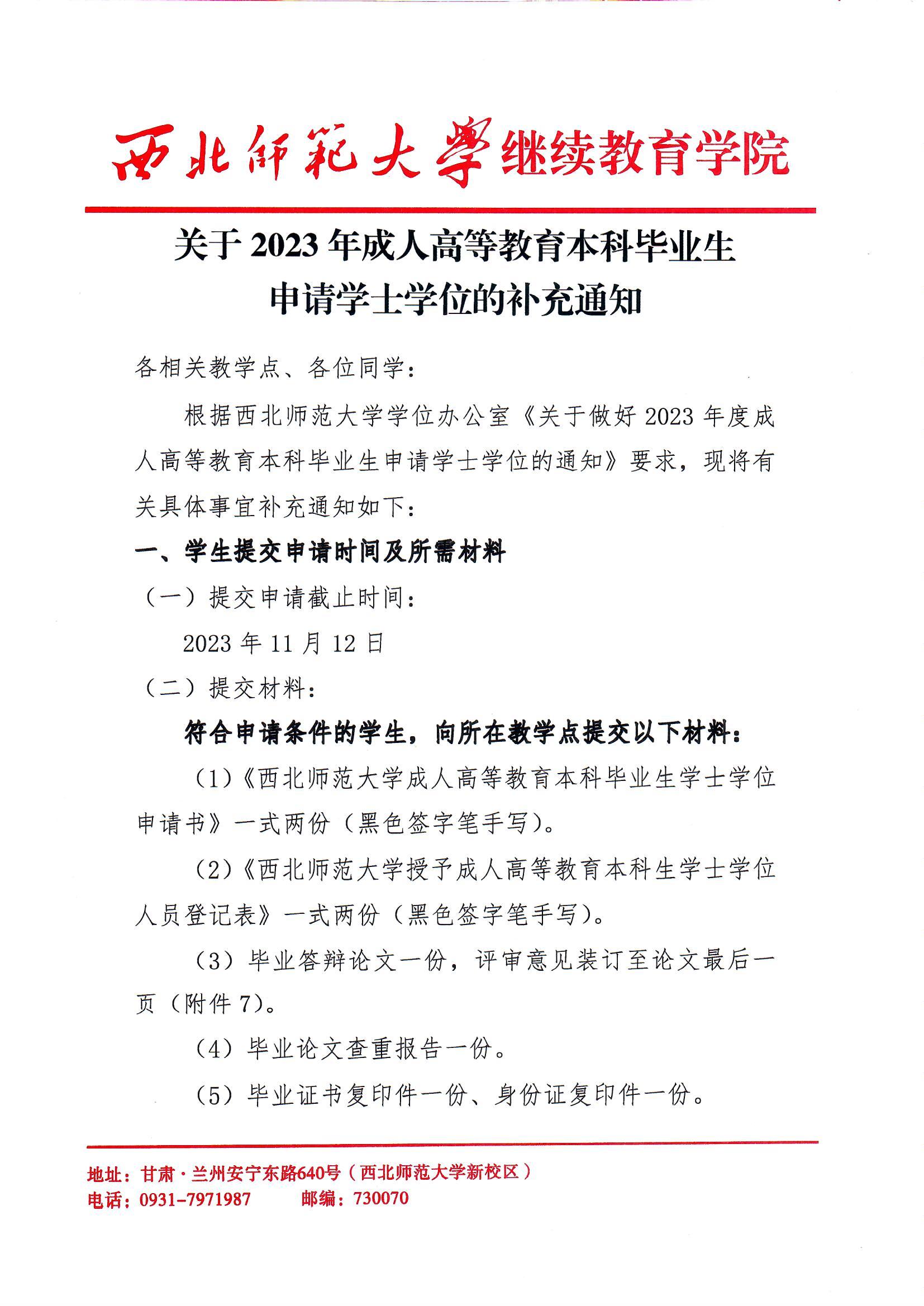 关于做好2023年度成人高等教育本科毕业申请学士学位工作的补充通知