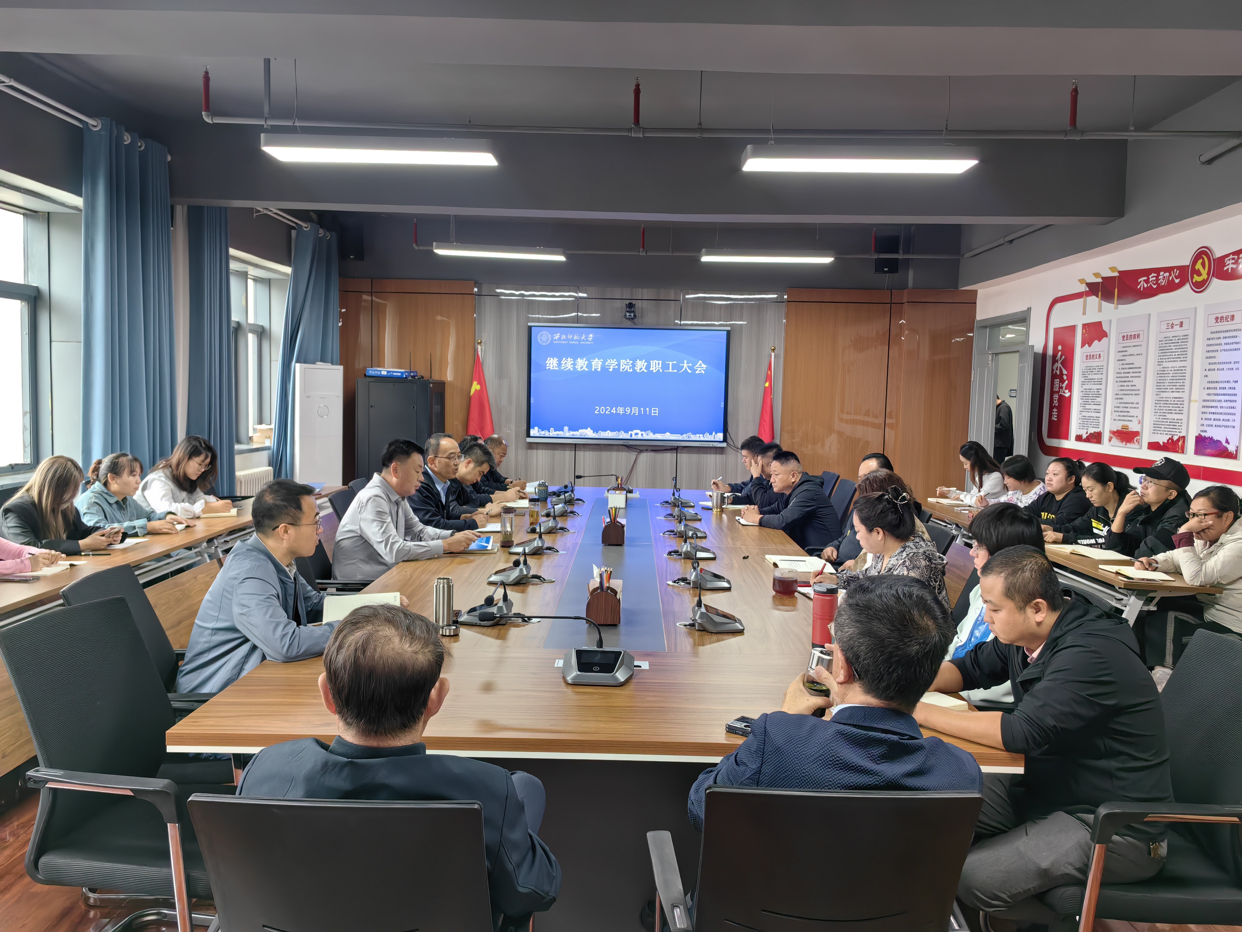 9月11日上午,继续教育学院召开教职工大会,学院班子成员、全体教职工参加会议,会议由党委书记陈科主持。