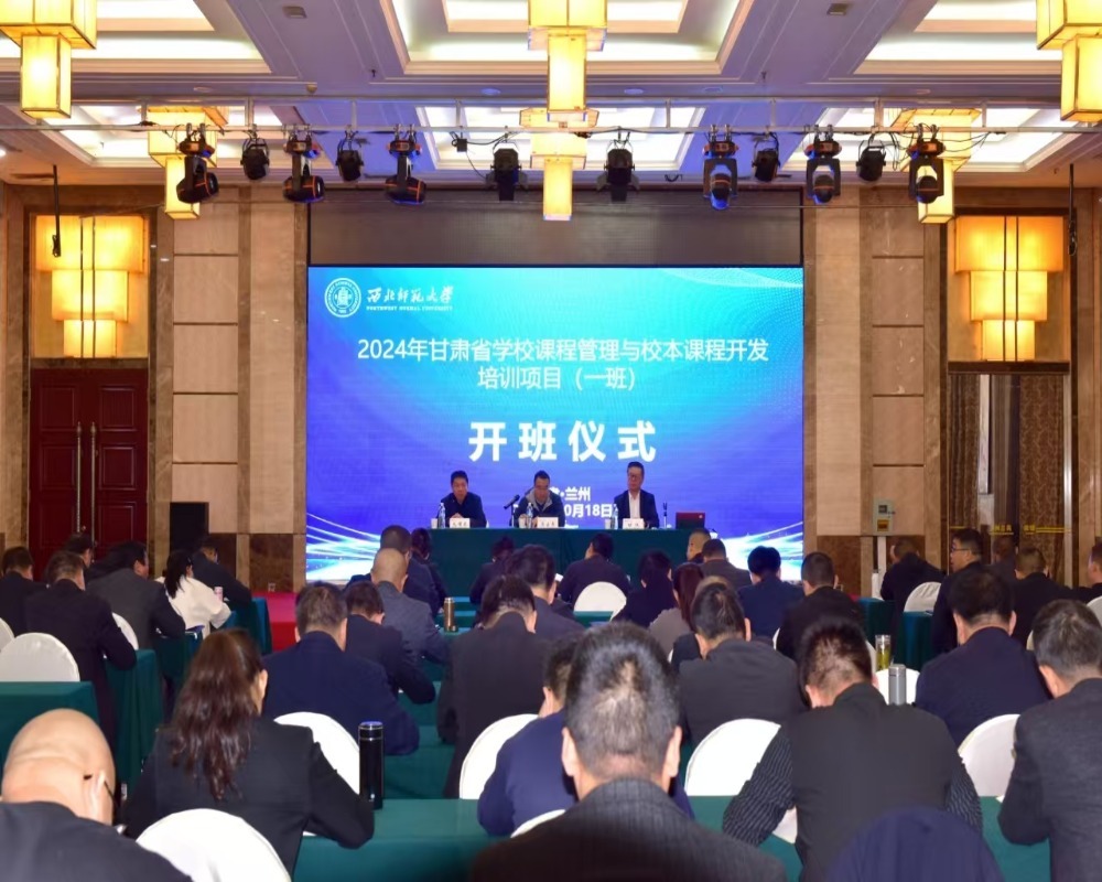 2024年11月18日上午,由我校组织实施的2024年甘肃省学校课程管理与校本课程开发培训项目顺利开班。继续教育学院副院长马占寿出席开班仪式并致辞,教育科学学院副教授、项目学科负责人毛耀忠解读课程方案。继续教育学院培训中心主任甘悦主持开班仪式。来自甘肃省的86名小学、初中校长以及继续教育学院相关工作人员参加开班仪式。