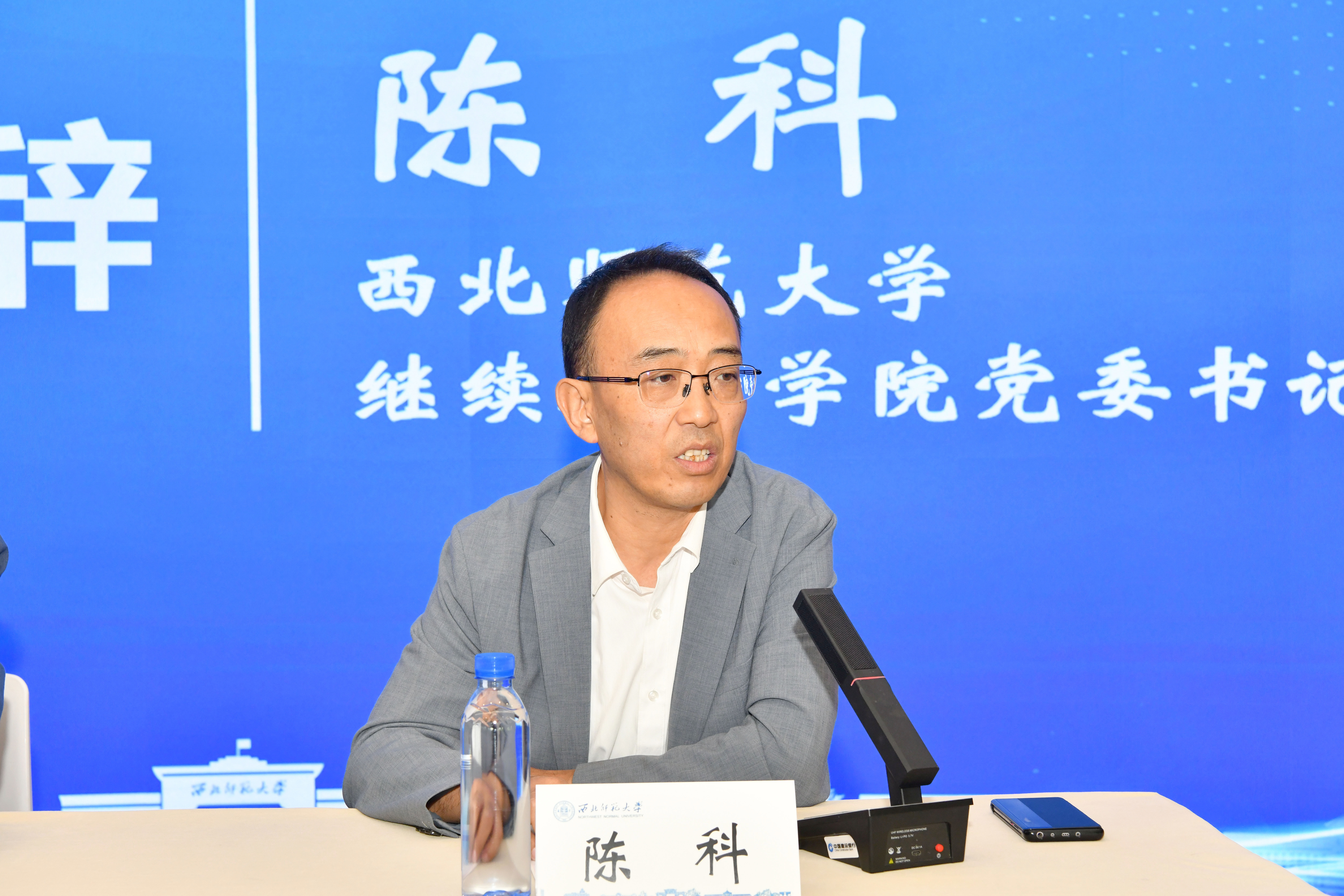 陈科在致辞对参加培训的各位学员表示欢迎,并介绍了学校的办学历史和继续教育工作取得的成绩。他指出,此次培训班在西北师大举办,既是甘肃开放大学对学校工作的信任,也为我们双方进一步加强交流、深化合作、促进发展提供了一个难得的机会。希望各位学员珍惜学习机会,勤思好学,严守培训纪律,加强交流,积极探索和谋划工作思路,将先进理念与实际工作相结合,为推动全省开放教育事业高质量发展贡献力量。