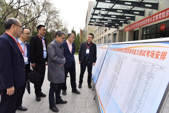 4月13日至14日,2024年上半年甘肃省高校教师教育教学能力测试工作在西北师范大学开展。甘肃省教育厅党组成员、副厅长曾华辉、西北师范大学校长、党委副书记王占仁、党委常委、副校长王文昇及省教育厅教师处负责人到现场巡视指导工作。