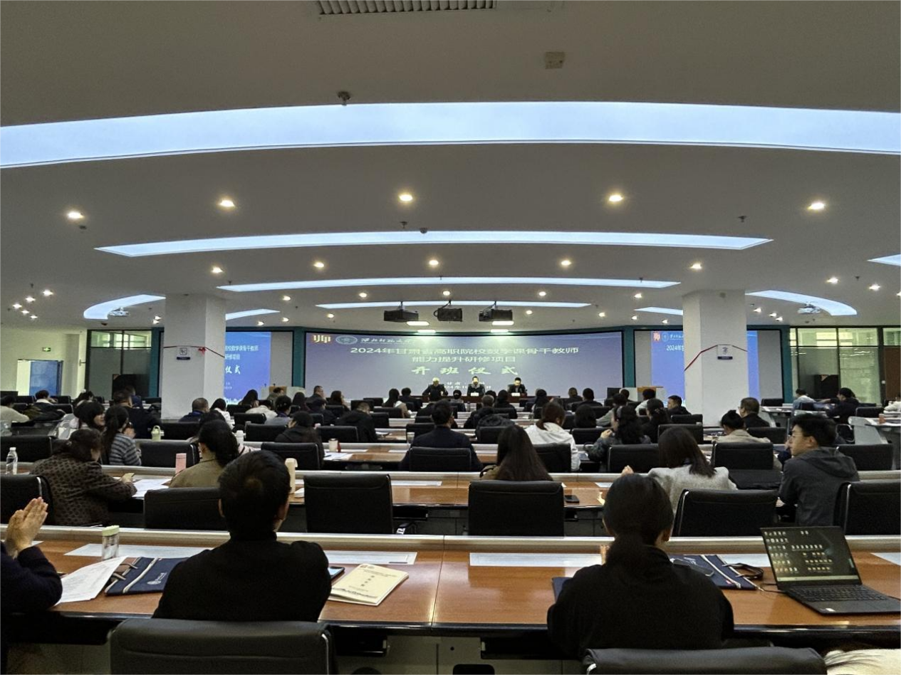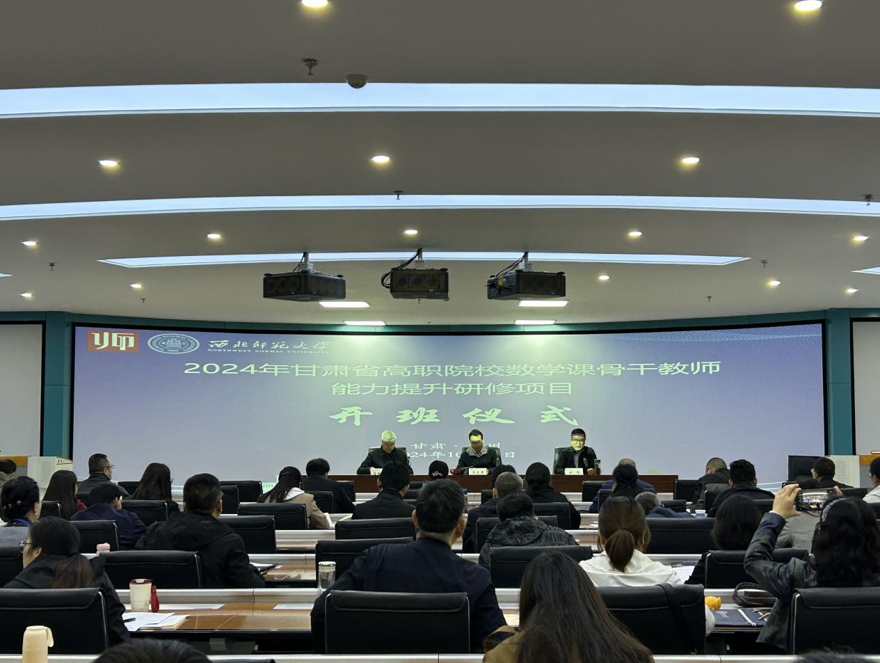 2024年10月11日上午,2024年甘肃省高职院校数学课骨干教师能力提升研修项目培训班在兰州新区职教园区顺利开班。西北师范大学继续教育学院副院长马占寿,西北师范大学教师教育学院教授吕世虎出席开班仪式。培训中心项目主任甘悦主持开班式,来自甘肃省各高职院校的100位参训教师及继续教育学院培训中心工作人员参加开班仪式。