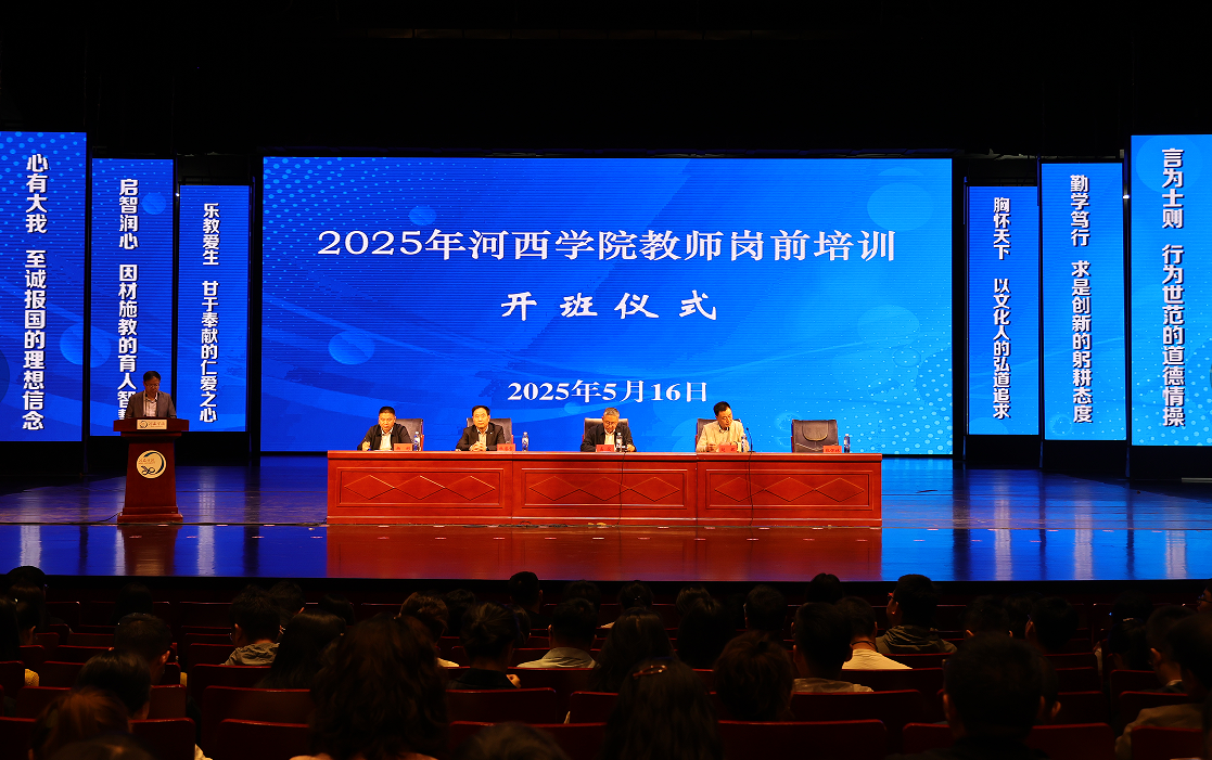 5月16日,河西学院2025年高校教师岗前培训独立办班开班仪式在河西讲堂报告厅隆重举行。河西学院党委常委、副校长高荣,西北师范大学继续教育学院院长、甘肃省高等学校师资培训中心办公室主任赵辉出席开班式并致辞;西北师范大学法学院教授杜睿哲,河西学院教务处处长杨彬和217名参训学员参加了开班式。河西学院党委教师工作部(人事处)部长(处长)张怀林主持开班式。