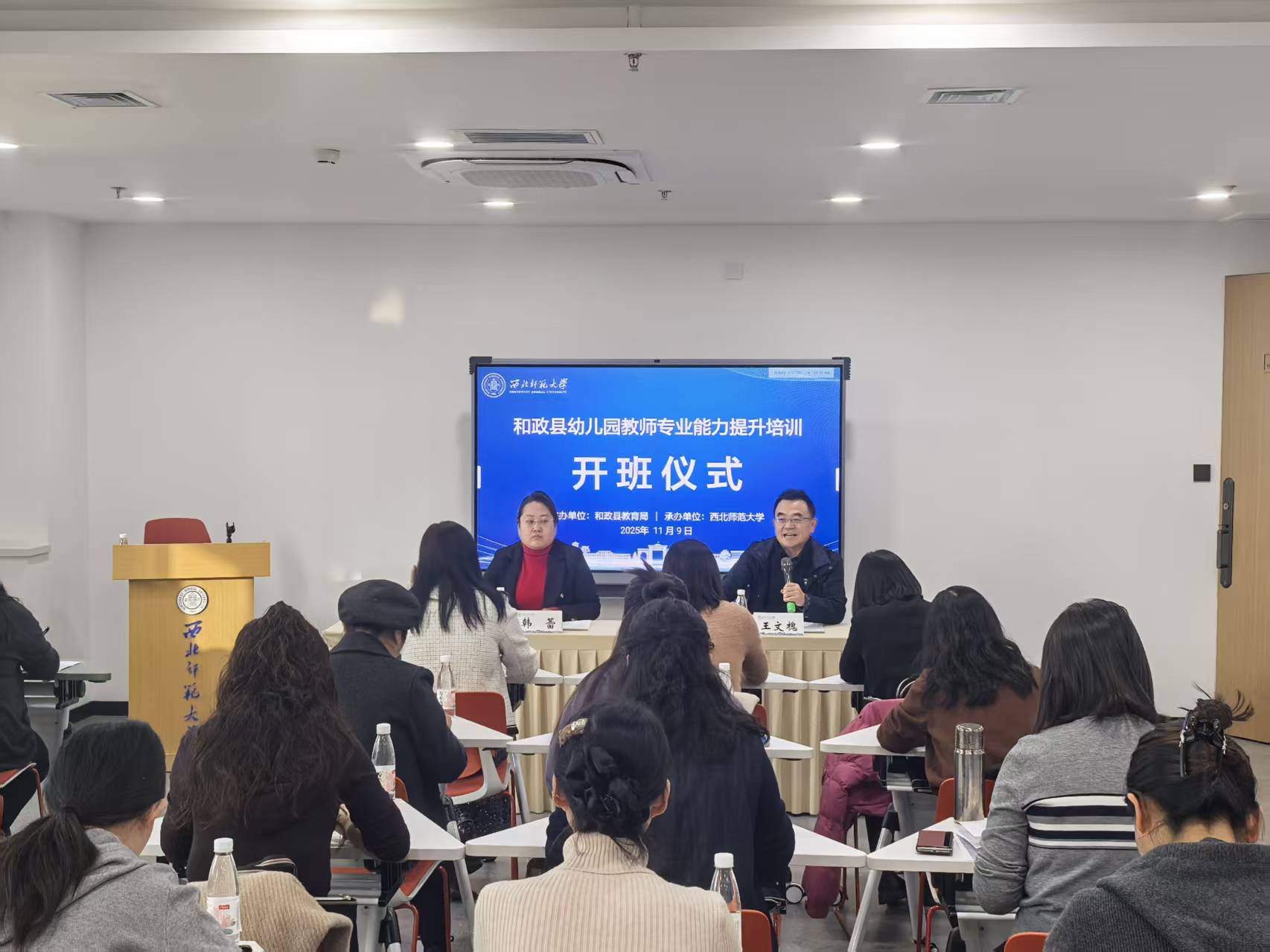 2025年11月9日上午,和政县幼儿园教师专业能力提升培训项目开班。甘肃省教师发展中心常务副主任王文槐出席开班仪式并讲话。来自和政县的48名幼儿园骨干教师参加仪式。仪式由继续教育学院培训中心教师主持。