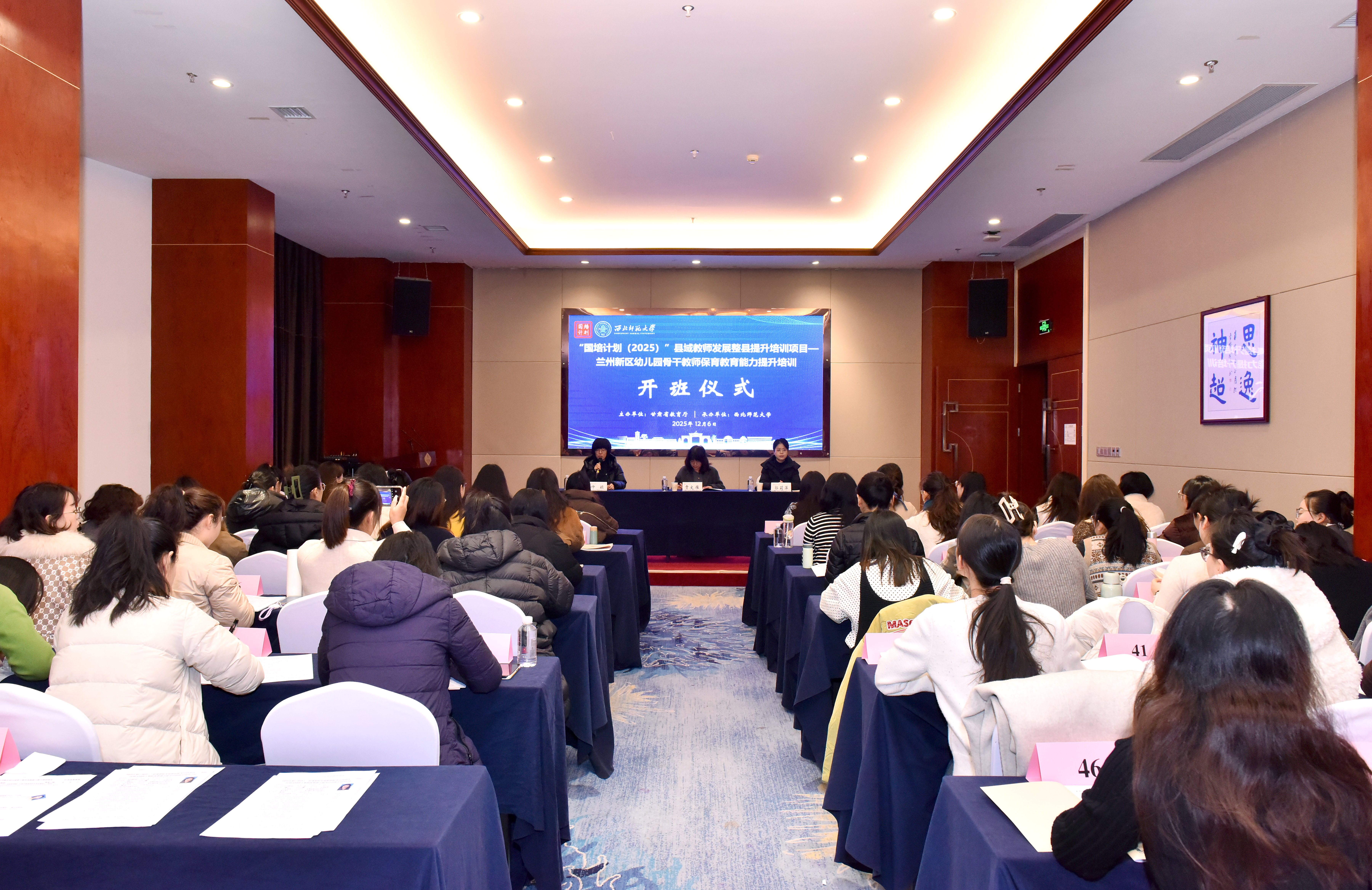 2025年12月6日上午,由西北师范大学承办的“国培计划(2025)”县域教师发展整县提升培训项目——兰州新区幼儿园骨干教师保教能力提升培训开班。继续教育学院副院长郭莉萍、兰州新区教育和卫生健康委员会(疾病和预防控制局)科长贾文雁出席仪式并讲话,来自兰州新区的50名幼儿园骨干教师参与培训。仪式由继续教育学院师资培训中心教师主持。