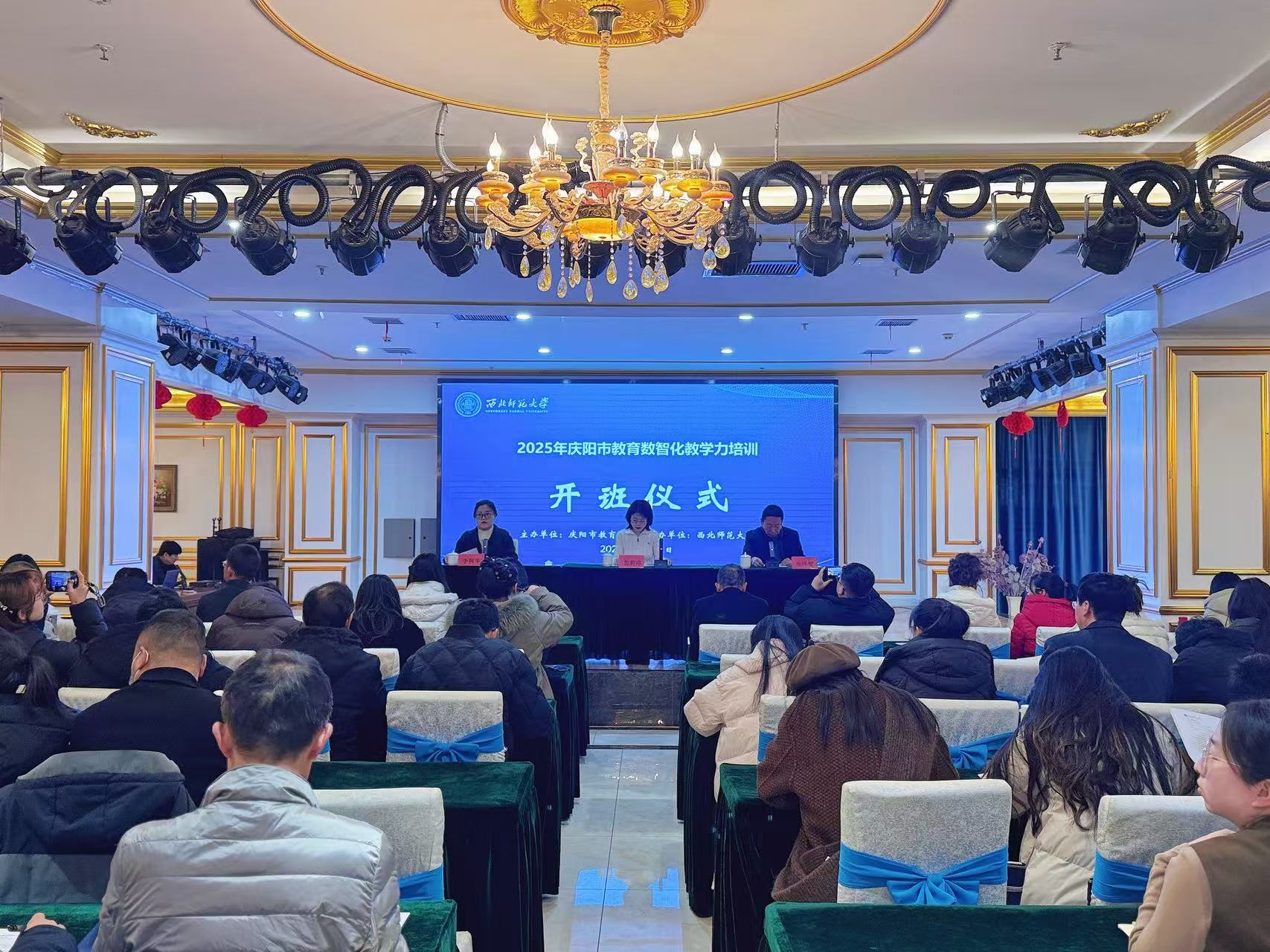 2025年12月13日,2025年庆阳市教育数智化教学力培训在庆阳开班。西北师范大学继续教育学院副院长郭莉萍、庆阳市教育局教研室主任张怀璧出席开班仪式,来自庆阳市各县(区)306名中小学骨干教师以及西北师范大学继续教育学院的相关工作人员参与了本次活动。