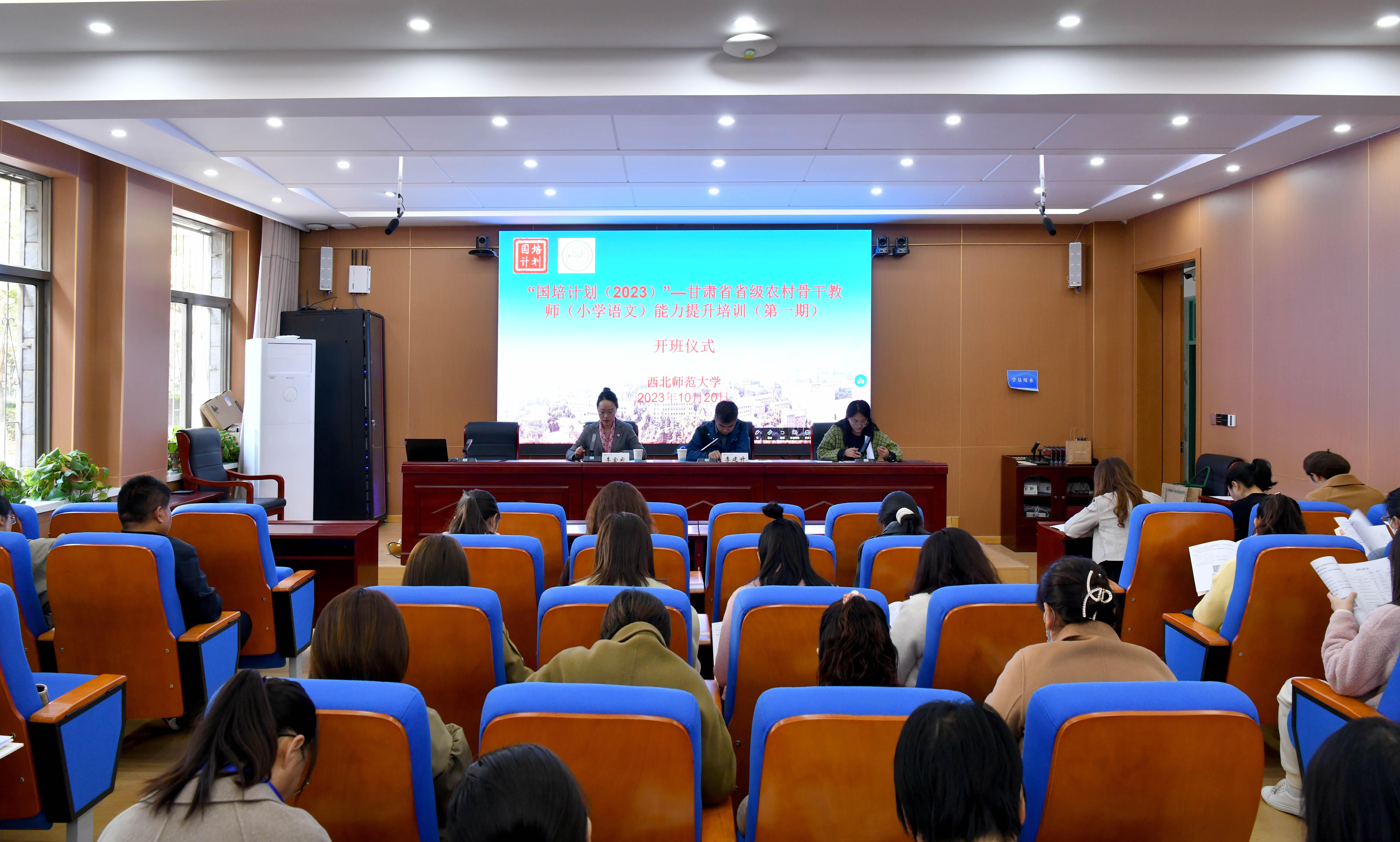 10月20日上午,“国培计划(2023)”甘肃省省级农村骨干教师(小学语文)能力提升培训在西北师范大学顺利开班。西北师范大学继续教育学院副院长李建升、项目学科负责人李金云教授和培训中心项目负责人出席开班仪式,来自全省100名农村骨干教师参加仪式。