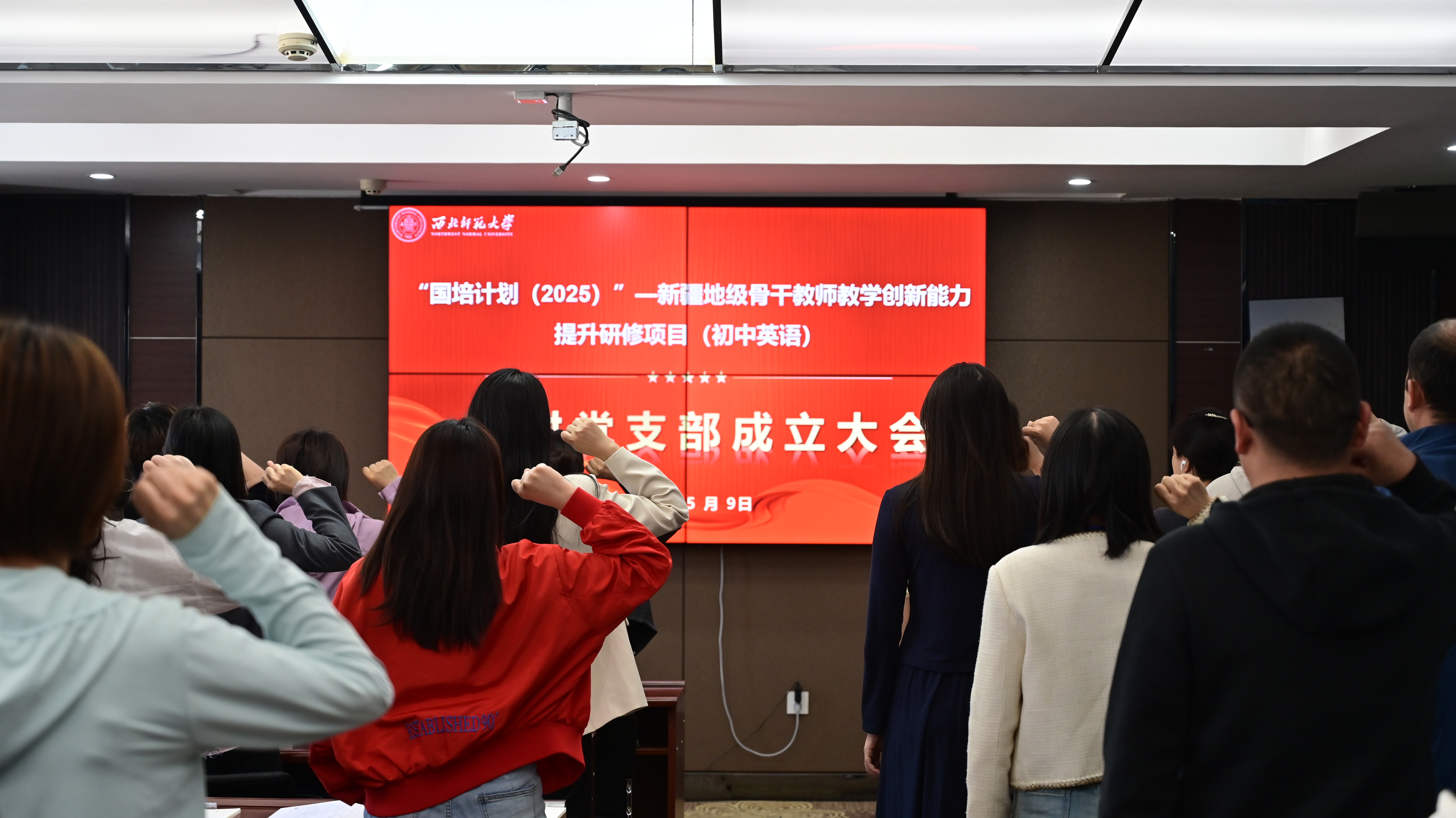 2025年5月9日上午,“国培计划(2025)”— 新疆自治区地级骨干教师教学创新能力提升研修(初中英语)暨县级骨干教师学科育人能力提升研修(小学英语)项目在西北师范大学开班。西北师范大学继续教育学院党委书记陈科,兰州市教育科学研究所发展室主任、项目学科负责人田黎出席开班仪式。开班式由西北师范大学继续教育学院培训中心负责人丁波主持。来自新疆维吾尔自治区的100名地级初中英语骨干教师、县级小学英语骨干教师以及西北师范大学继续教育学院培训中心相关工作人员参加开班仪式。