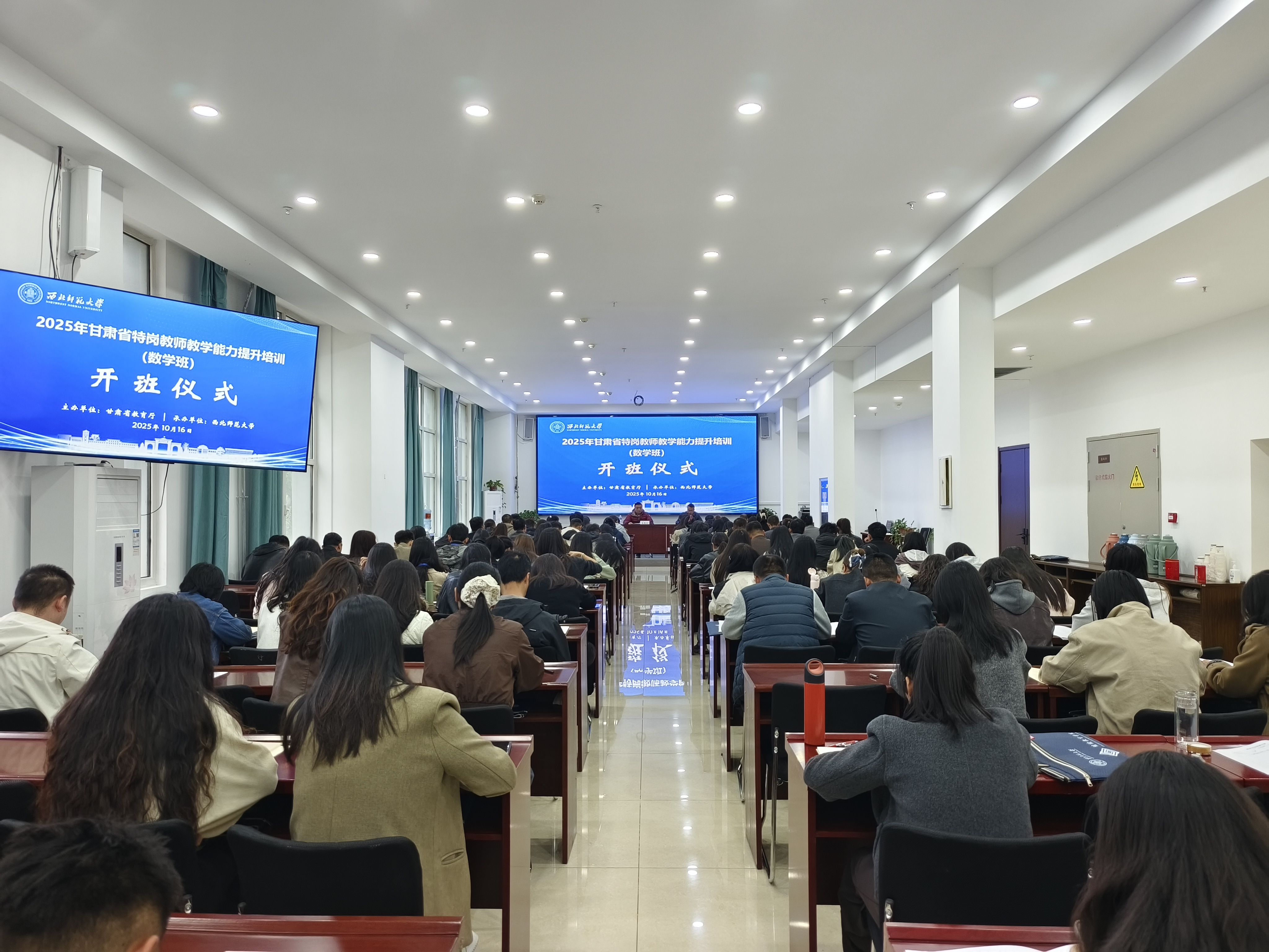 2025年10月16日上午,2025 年甘肃省特岗教师教学能力提升培训(数学)在西北师范大学开班。西北师范大学继续教育学院副院长马占寿出席开班仪式并讲话,来自甘肃省各地的 200 名特岗数学教师及继续教育学院相关工作人员参加仪式。学院培训中心乌恩夫主持开班仪式。