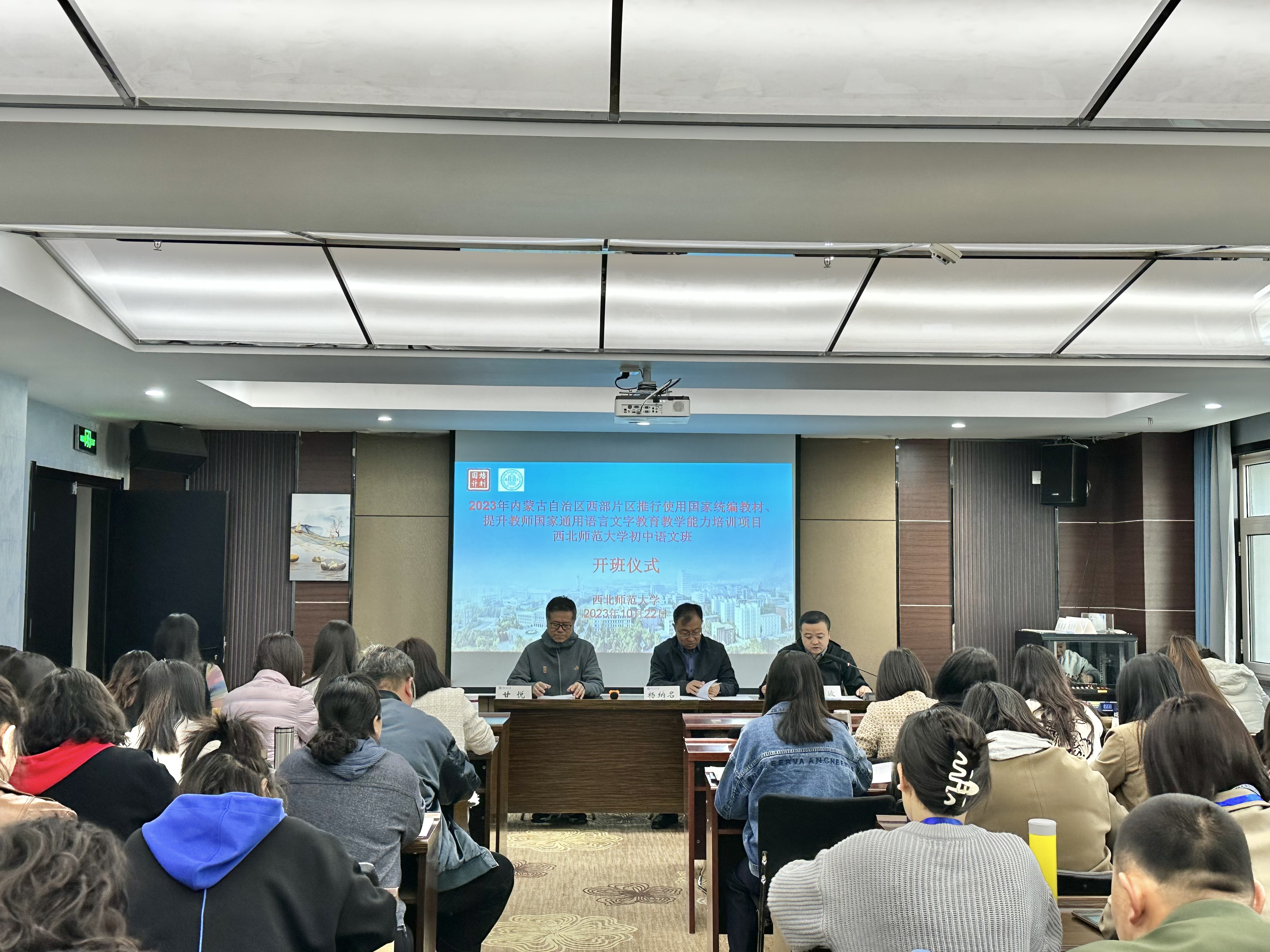 10月22日上午,2023年内蒙古自治区西部片区推行使用国家统编教材、提升教师国家通用语言文字教育教学能力(初中语文)培训班在西北师大顺利开班。西北师范大学继续教育学院院长杨纳名出席开班仪式并致辞,来自内蒙古自治区的53名初中语文教师参加了开班仪式。