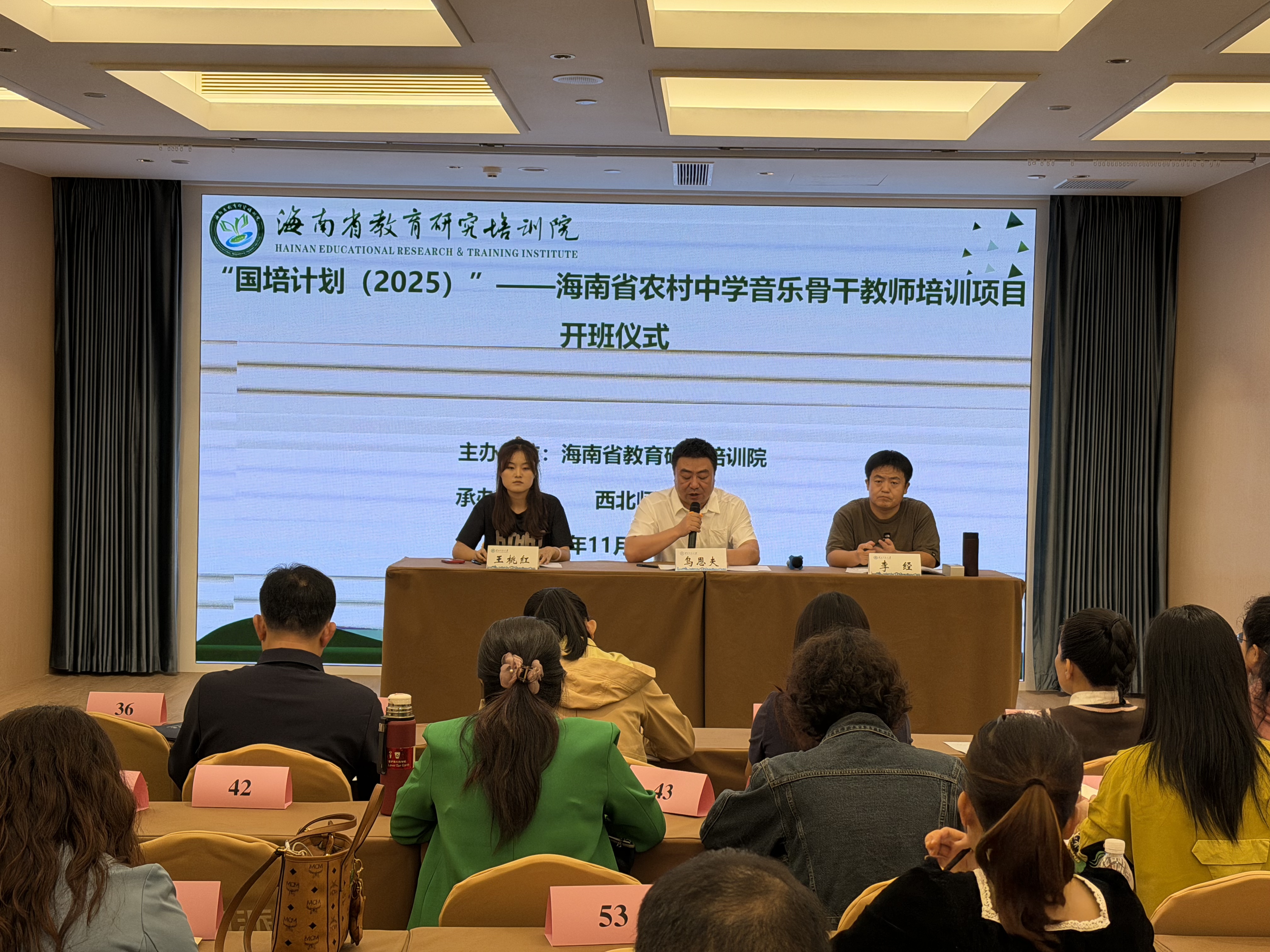 为深入贯彻国家教师队伍建设相关精神,持续提升农村中学音乐教师的专业素养与教学能力,由海南省教育研究培训院主办、西北师范大学承办的“国培计划(2025)”——海南省中西部骨干项目-农村中学音乐骨干教师培训于2025年11月7日在海口市开班。西北师范大学培训中心乌恩夫,西北师范大学音乐学院副教授、项目学科负责人李经出席讲话,海南省各地100名农村中学音乐骨干教师参加了本次开班。