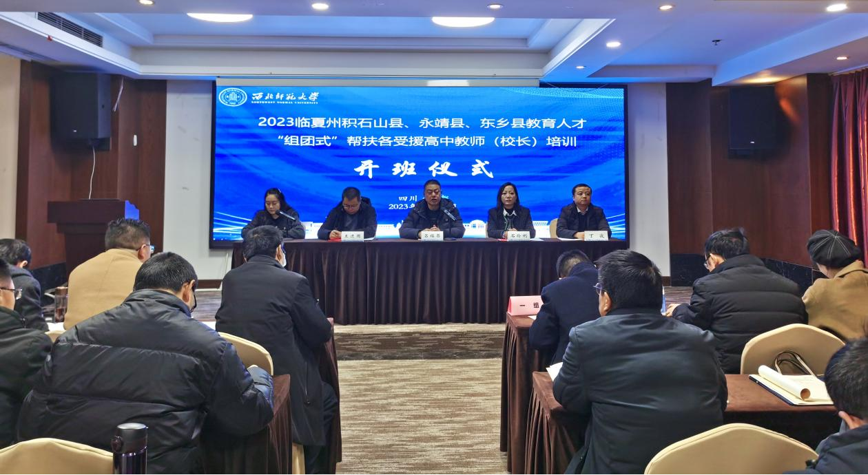 12月18日上午,继续教育学院承办的临夏州积石山县、永靖县、东乡县教育人才“组团式”帮扶各受援高中教师(校长)培训在成都顺利开班。甘肃省临夏州教育局党组成员、副局长吕福昌,甘肃省临夏州教育局教师发展科科长石伶俐,甘肃省临夏州教育科学研究所所长王进国,继续教育学院培训中心主任丁波出席开班仪式。来自济南、兰州、临夏帮扶积石山县、永靖县、东乡县教育人才“组团式”帮高中阶段学校教师(校长)66人参加开班式。