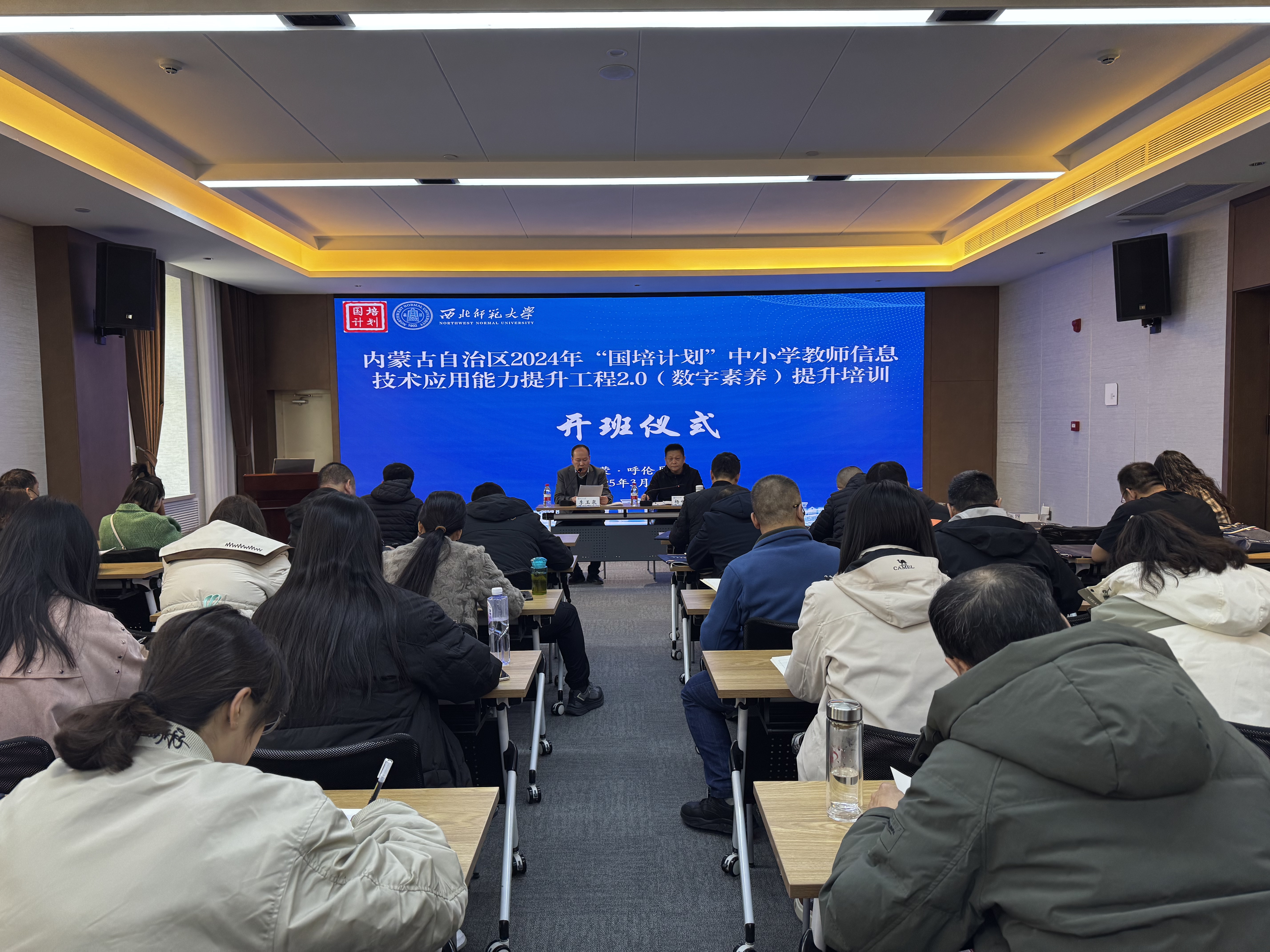 2025年3月28日上午,内蒙古自治区2024年“国培计划”中小学教师信息技术应用能力提升工程2.0(数字素养四班)提升培训在内蒙古自治区呼伦贝尔市顺利开班。继续教育学院副院长李玉泉出席开班仪式并致辞,来自全区各地的103名骨干教师齐聚一堂,共同开启数字化教学能力提升之旅。仪式由继续教育学院培训中心教师主持。