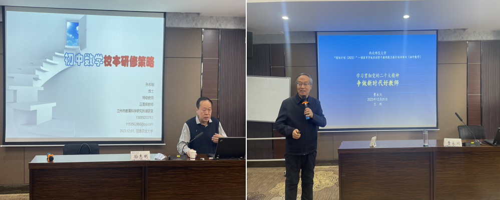 开班仪式后,上午由西安市教师发展中心曹永川老师作了题为《学习贯彻党的二十大精神,争做新时代好教师》专题讲座,下午由兰州市教育科学研究所孙志刚老师作了题为《初中数学校本研修策略》专题讲座,为期十天的酒泉市市级农村骨干教师能力提升(初中数学)培训班拉开序幕。