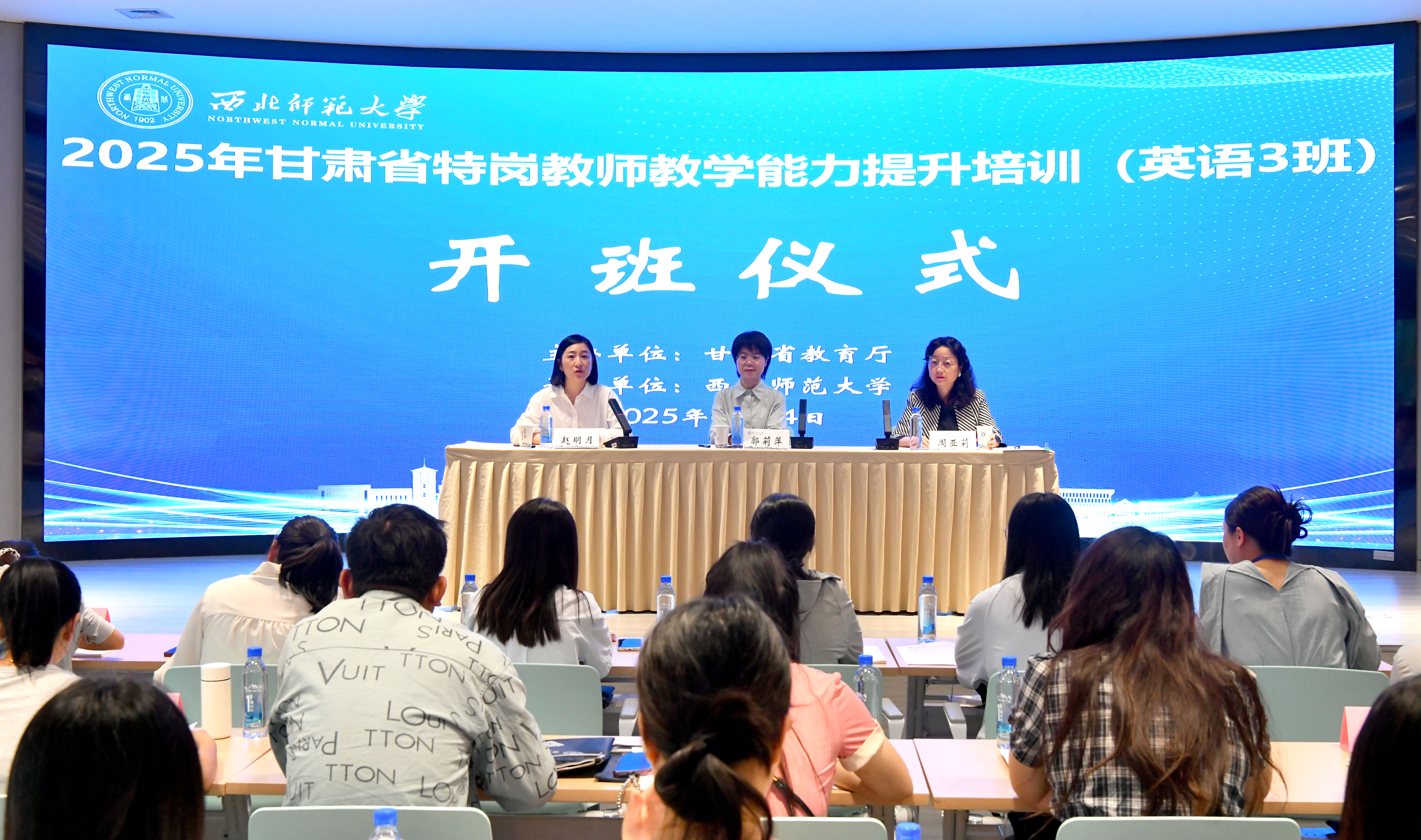2025年6月24日上午,2025年甘肃省特岗教师教学能力提升培训(英语3班)在西北师范大学顺利开班。继续教育学院副院长郭莉萍、外国语学院教授周亚莉出席开班仪式。来自全省的100名小学英语特岗教师开启为期10天的能力提升学习之旅,开班仪式由继续教育学院培训中心教师主持。