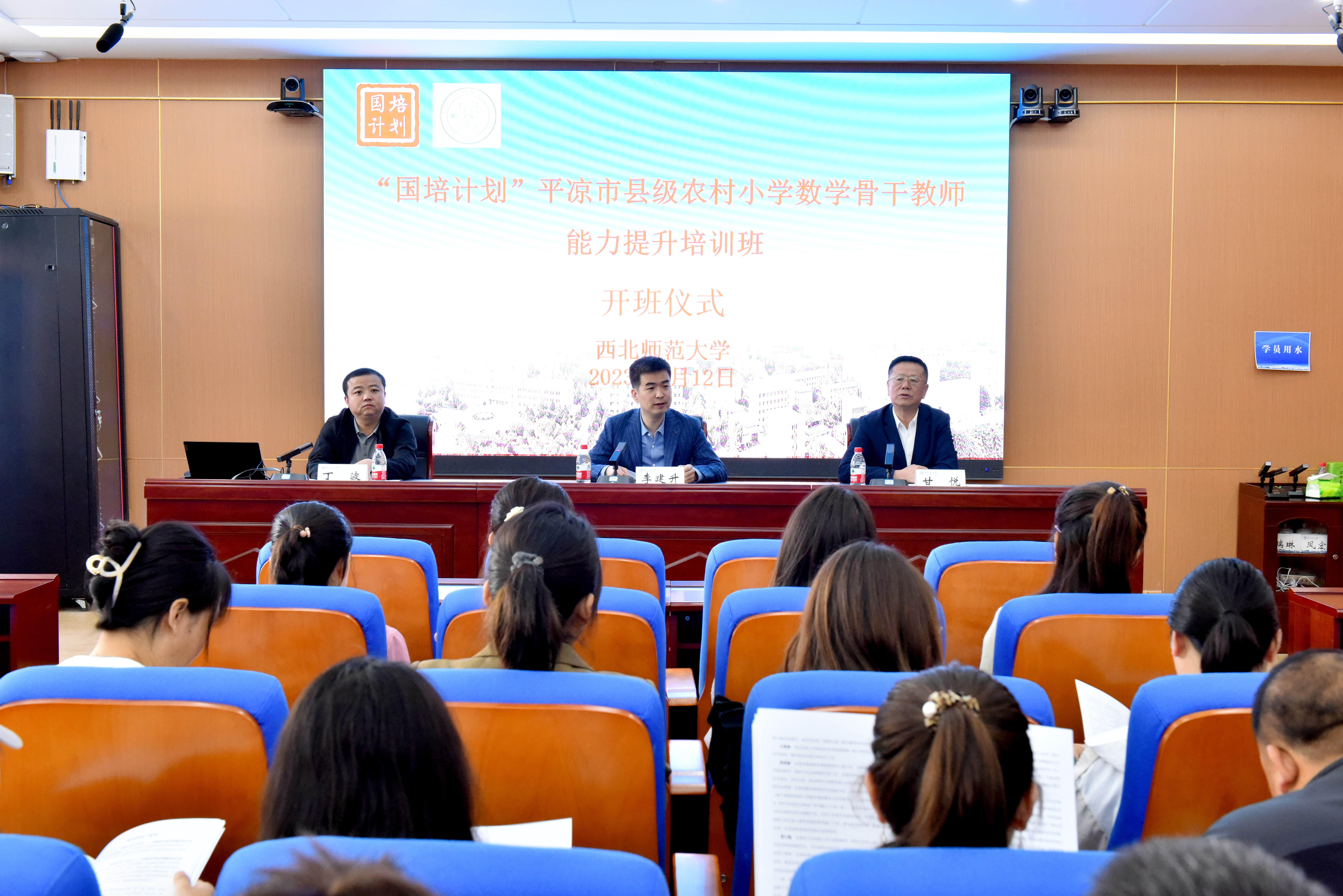 西北师范大学继续教育学院副院长李建升、西北师范大学继续教育学院培训中心主任丁波、继续教育学院培训中心甘悦和来自平凉市县级农村小学数学骨干教师80人参加了开班仪式,开班仪式由丁波主持。