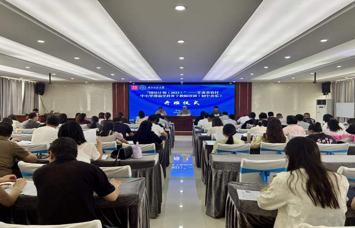 2024年5月18日上午,“国培计划(2023)”—甘肃省农村中小学薄弱学科(初中音乐)骨干教师培训在张掖市顺利开班。继续教育学院副院长姚军出席开班仪式并致辞。音乐学院副教授李经、继续教育学院培训中心主任丁波以及甘肃省的200名初中音乐骨干教师参加开班仪式。