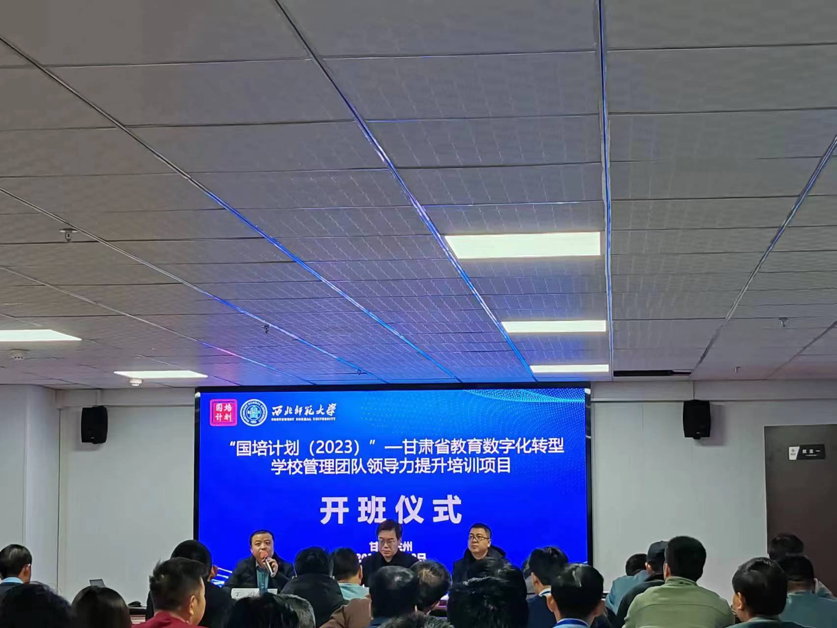 12月9日上午,“国培计划(2023)”—教育数字化转型学校管理团队领导力提升培训班西北师范大学顺利开班。继续教育学院副院长荆孝民、项目学科负责人郝建江、学院培训中心负责人以及来自甘南州的81名教师参加开班仪式。