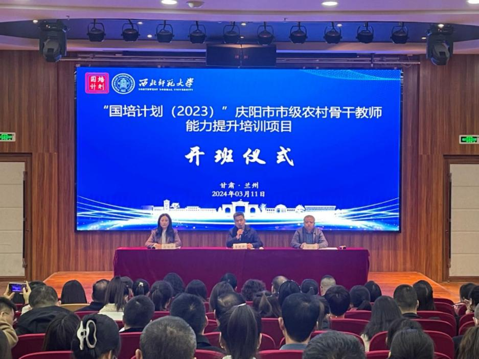 2024年3月11日上午,西北师范大学继续教育学院承办的“国培计划(2023)”—庆阳市市级农村骨干教师能力提升培训班顺利开班。甘肃省教师发展中心常务副主任、继续教育学院副院长李建升出席开班仪式并致辞,来自庆阳市中小学的267名市(县)级农村骨干教师及继续教育学院培训中心相关工作人员参加开班仪式。