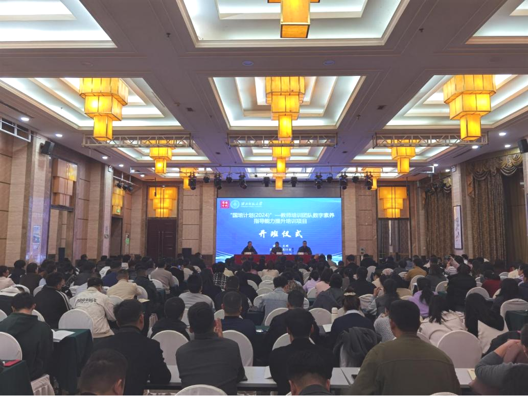 2024年11月11日上午,“国培计划(2024)”—教师培训团队数字素养指导能力提升培训班顺利开班。继续教育学院副院长马占寿出席开班仪式并致辞,教育技术学院副教授张靖、来自新疆维吾尔自治区各地的200名骨干教师及继续教育学院相关工作人员参加开班仪式。仪式由继续教育学院培训中心项目主任甘悦主持。