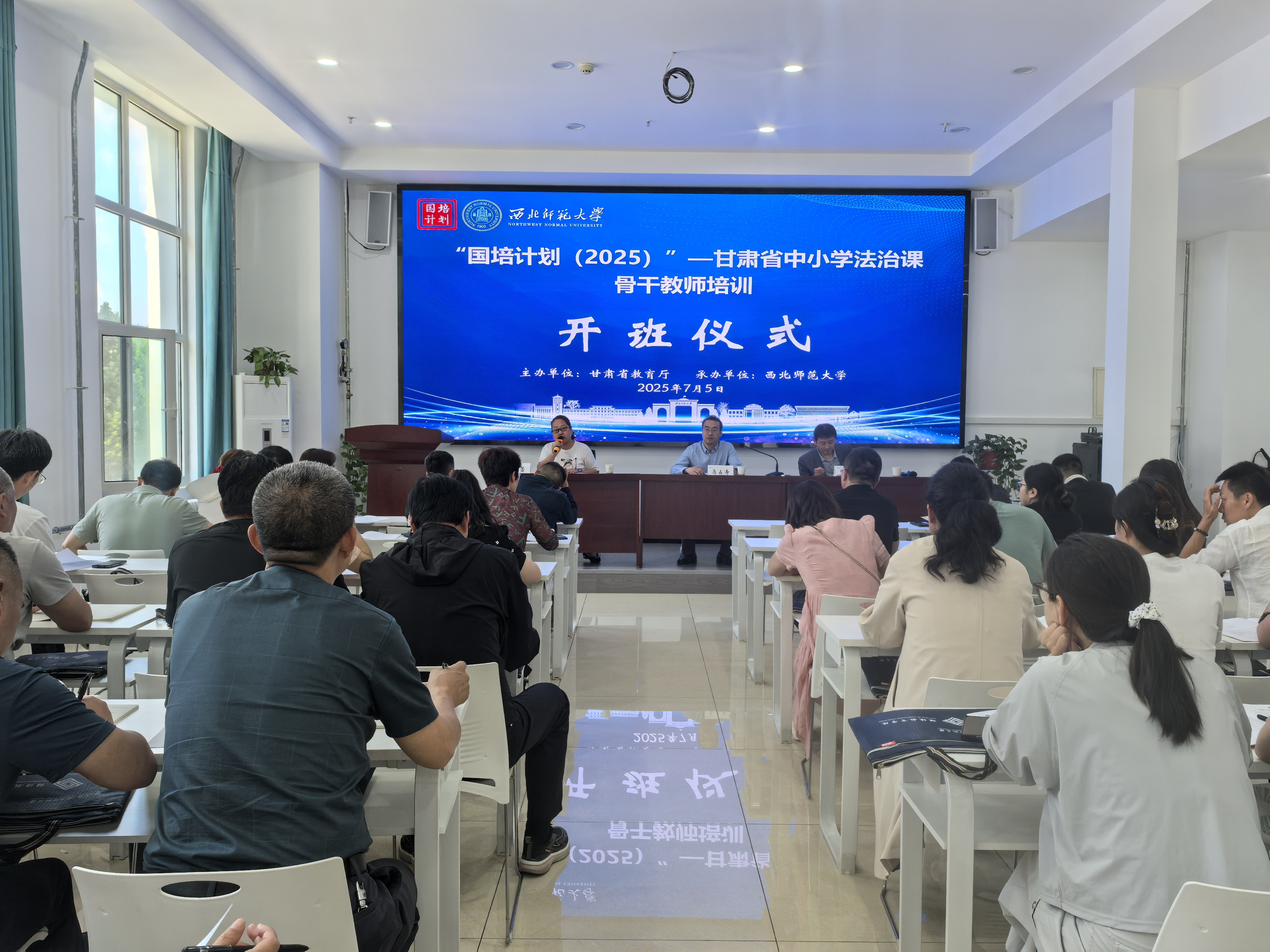 2025年7月5日上午,“国培计划(2025)”—甘肃省中小学法治课骨干教师培训项目在西北师范大学顺利开班。继续教育学院副院长马占寿、马克思主义学院教授候选明出席开班仪式,来自全省的190名中小学法治课骨干教师开启为期7天的学习之旅,开班仪式由继续教育学院培训中心教师主持。