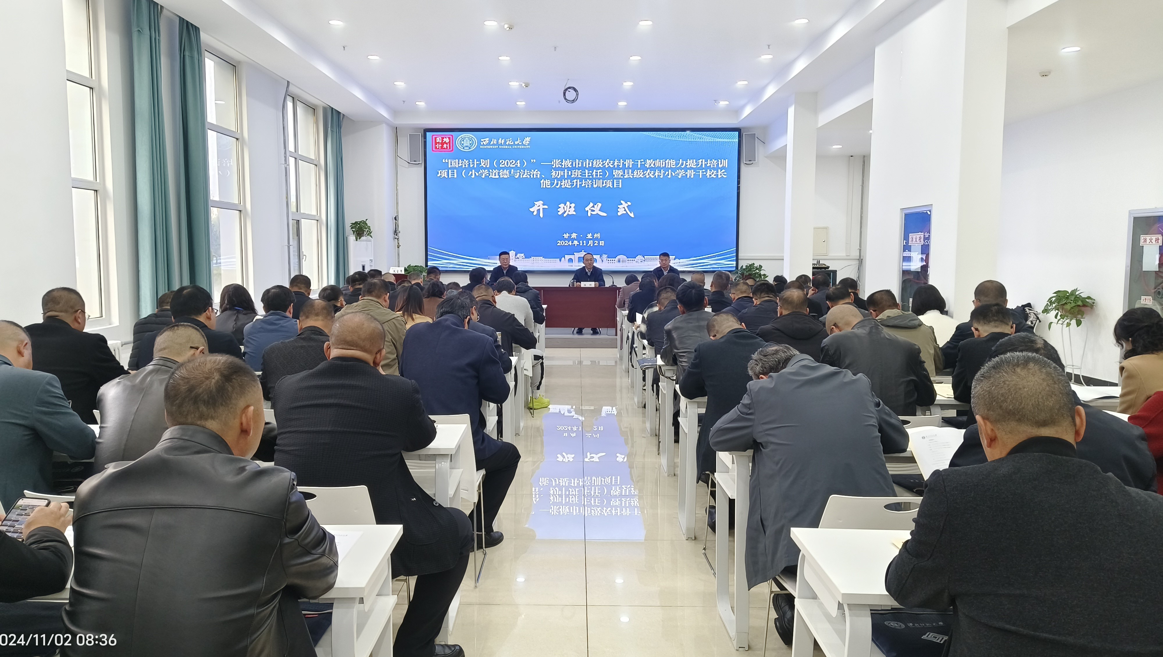 2024年11月2日上午,“国培计划(2024)”—张掖市市级农村骨干教师能力提升培训项目(小学道德与法治、初中班主任)暨张掖市县级农村小学骨干校长培训顺利开班。西北师范大学继续教育学院党委书记陈科,兰州市教育科学研究所思政教研员白燎原出席开班仪式。来自张掖市的75名道德与法治骨干教师、75名初中班主任、53名小学骨干校长以及西北师范大学继续教育学院相关工作人员参加了开班仪式。仪式由继续教育学院培训中心项目主任甘悦主持。