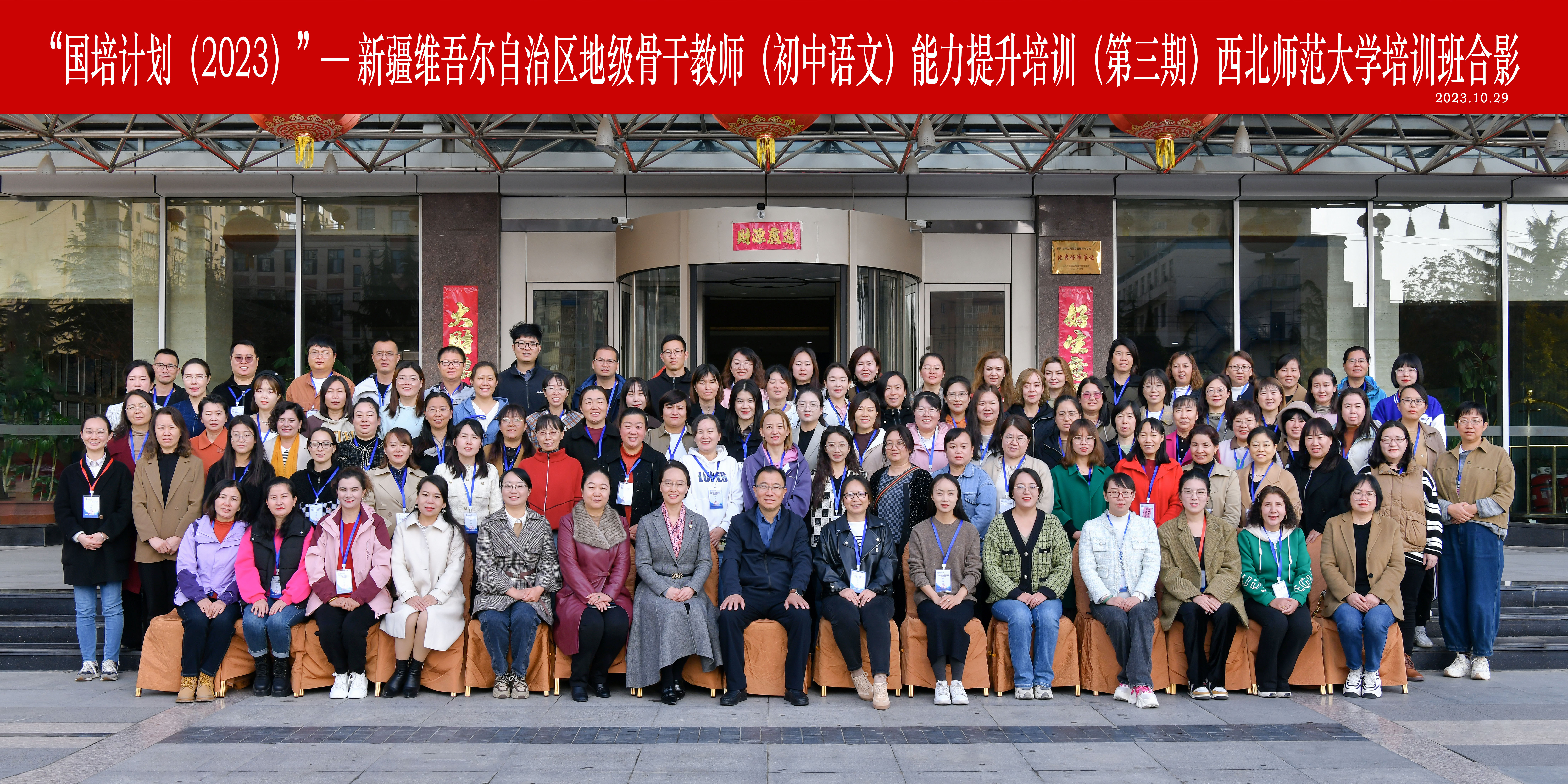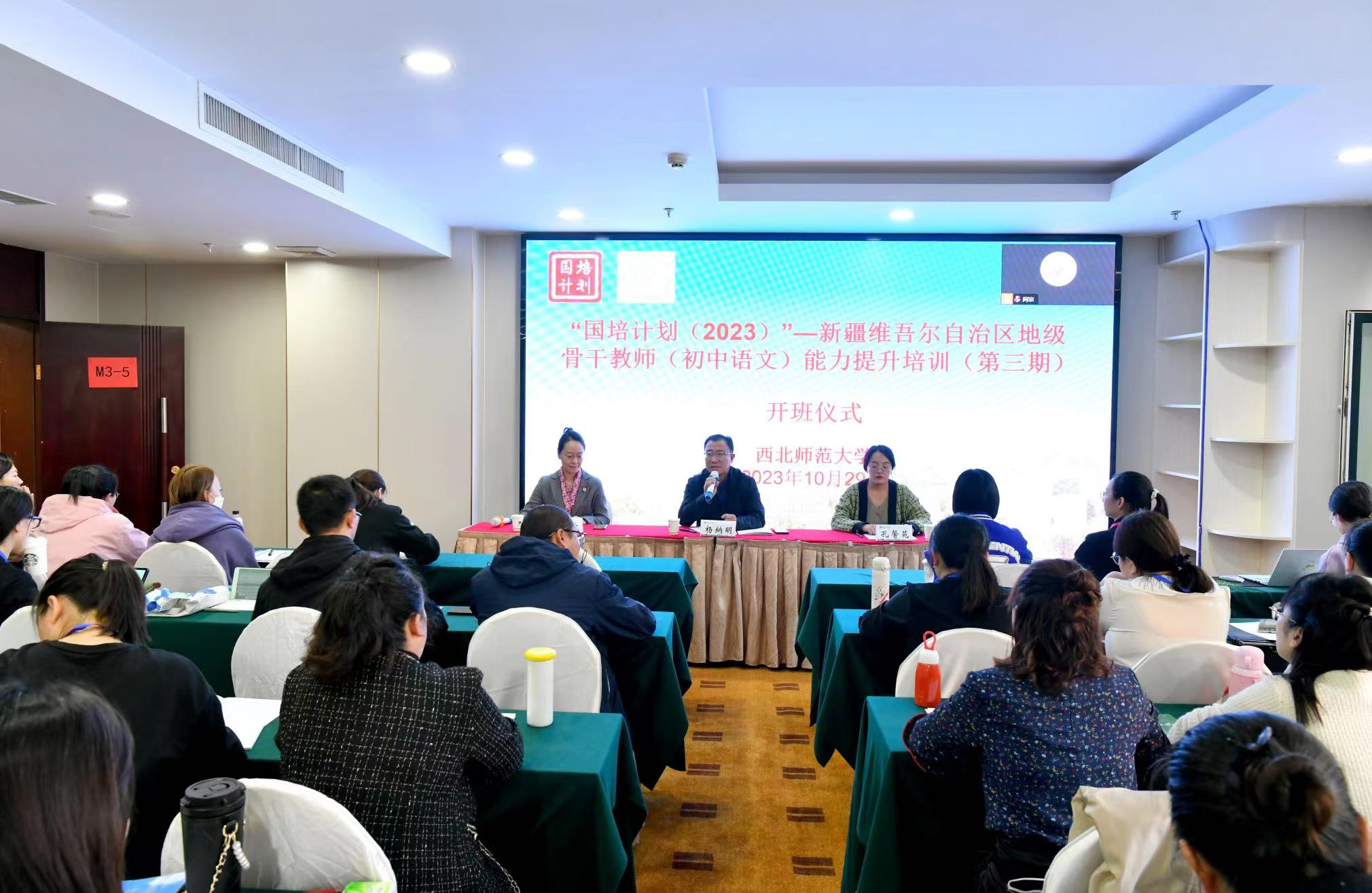 10月29日上午,“国培计划(2023)”—新疆维吾尔自治区地级骨干教师能力提升培训项目第三期(初中语文)培训班在西北师范大学顺利开班。西北师范大学继续教育学院院长杨纳名、项目学科负责人李金云教授出席开班仪式。来自全疆的100名地级骨干教师参加培训。