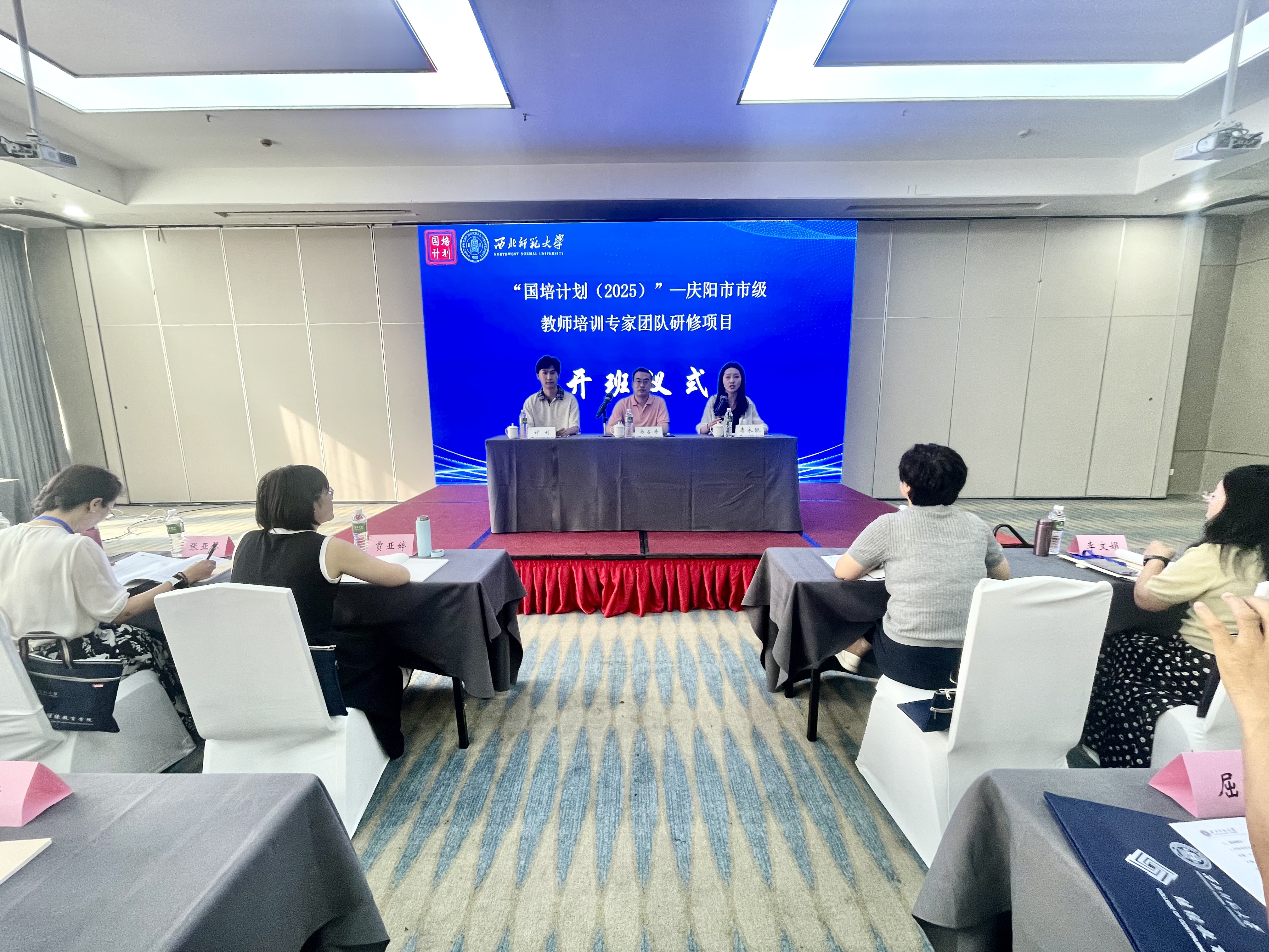 2025年7月12日上午,西北师范大学承办的“国培计划(2025)”庆阳市教师培训专家团队研修项目在重庆开班。继续教育学院副院长马占寿出席开班仪式并致辞,庆阳市教师发展中心教师计钊作培训相关要求和安排。来自庆阳市级名师工作室主持人、省市“四名工程”人才64人以及西北师范大学继续教育学院相关工作人员参加开班仪式。仪式由继续教育学院培训中心教师主持。