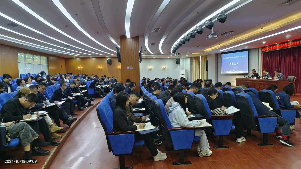 2024年10月13日上午,西北师范大学承办的2024年甘肃省思政课教师队伍建设专项培训班在兰州新区职教园区顺利开班。西北师范大学继续教育学院副院长马占寿、西北师范大学教授、项目学科负责人候选明出席开班仪式。培训中心项目主任甘悦主持开班式,来自甘肃省各市(州)的180位参训老师及继续教育学院培训中心工作人员参加开班仪式。