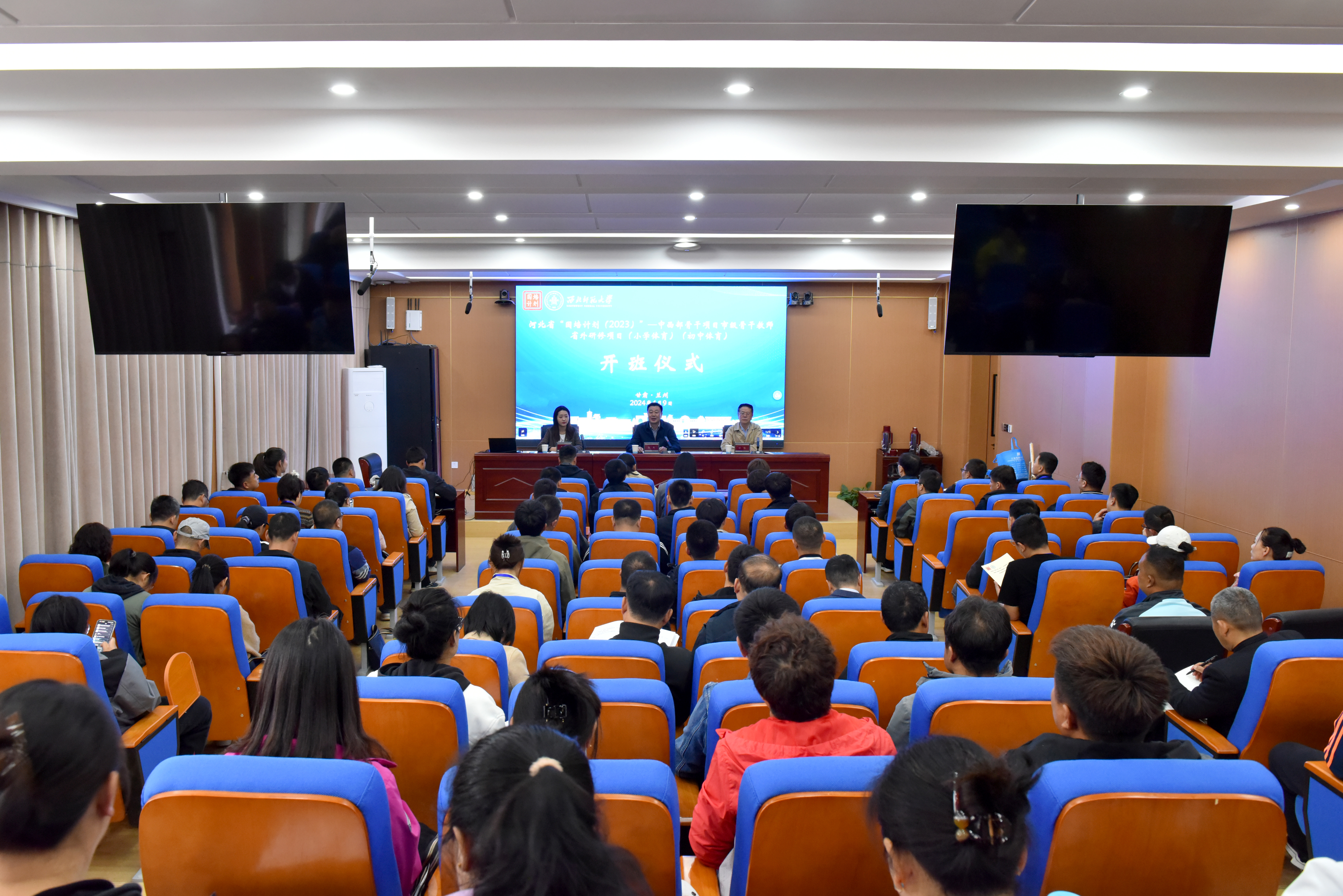 2024年4月9日上午,西北师范大学继续教育学院承办的河北省 “国培计划(2023)”—中西部骨干项目市级骨干教师省外研修项目(小学体育、初中体育)顺利开班。继续教育学院院长赵辉出席开班仪式并致辞。继续教育学院培训中心项目负责人甘悦及来自河北省中小学的100名骨干教师以及继续教育学院培训中心相关工作人员参加开班仪式。