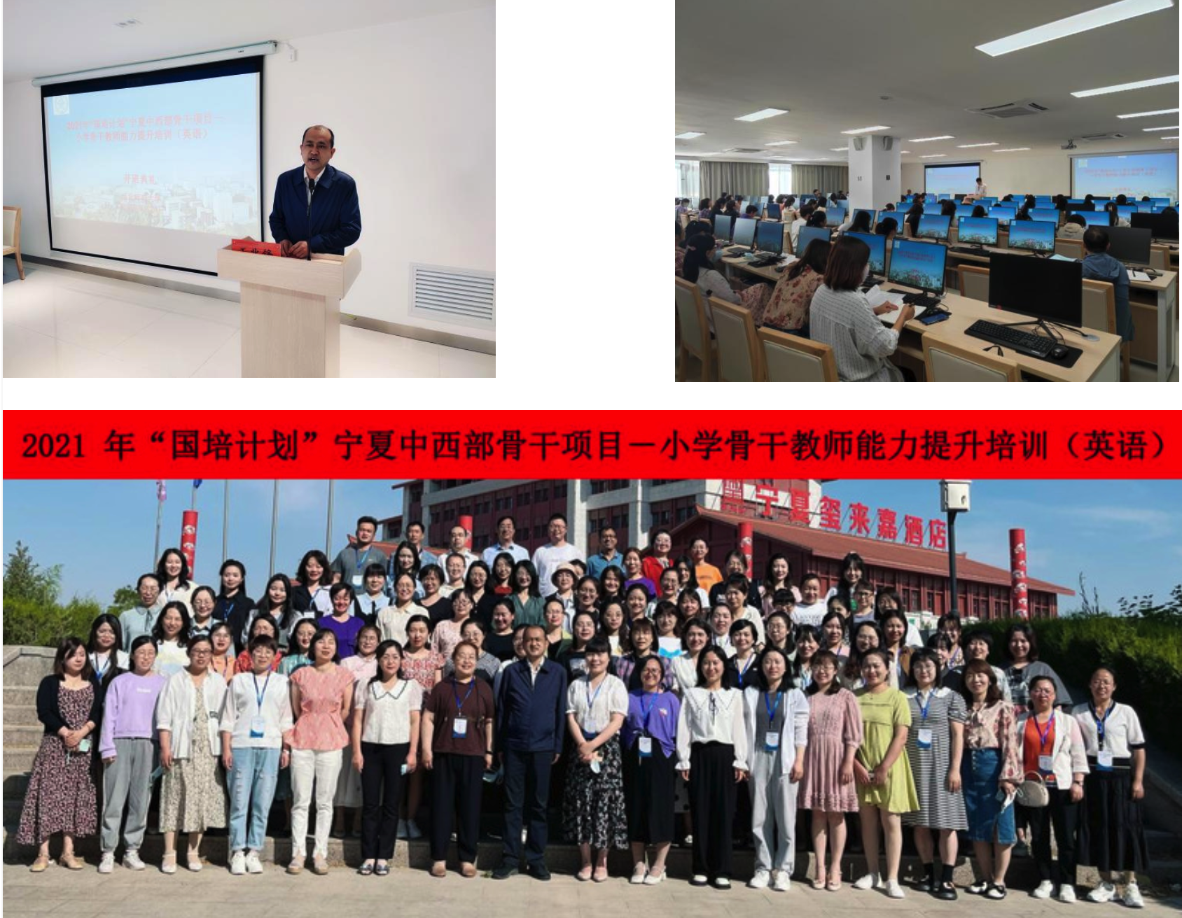 2022年5月24日(周二)上午,由西北师范大学继续教育学院承办宁夏回族自治区2021年“国培计划”小学骨干教师能力提升培训班在宁夏瑞合会议中心举行开班典礼。