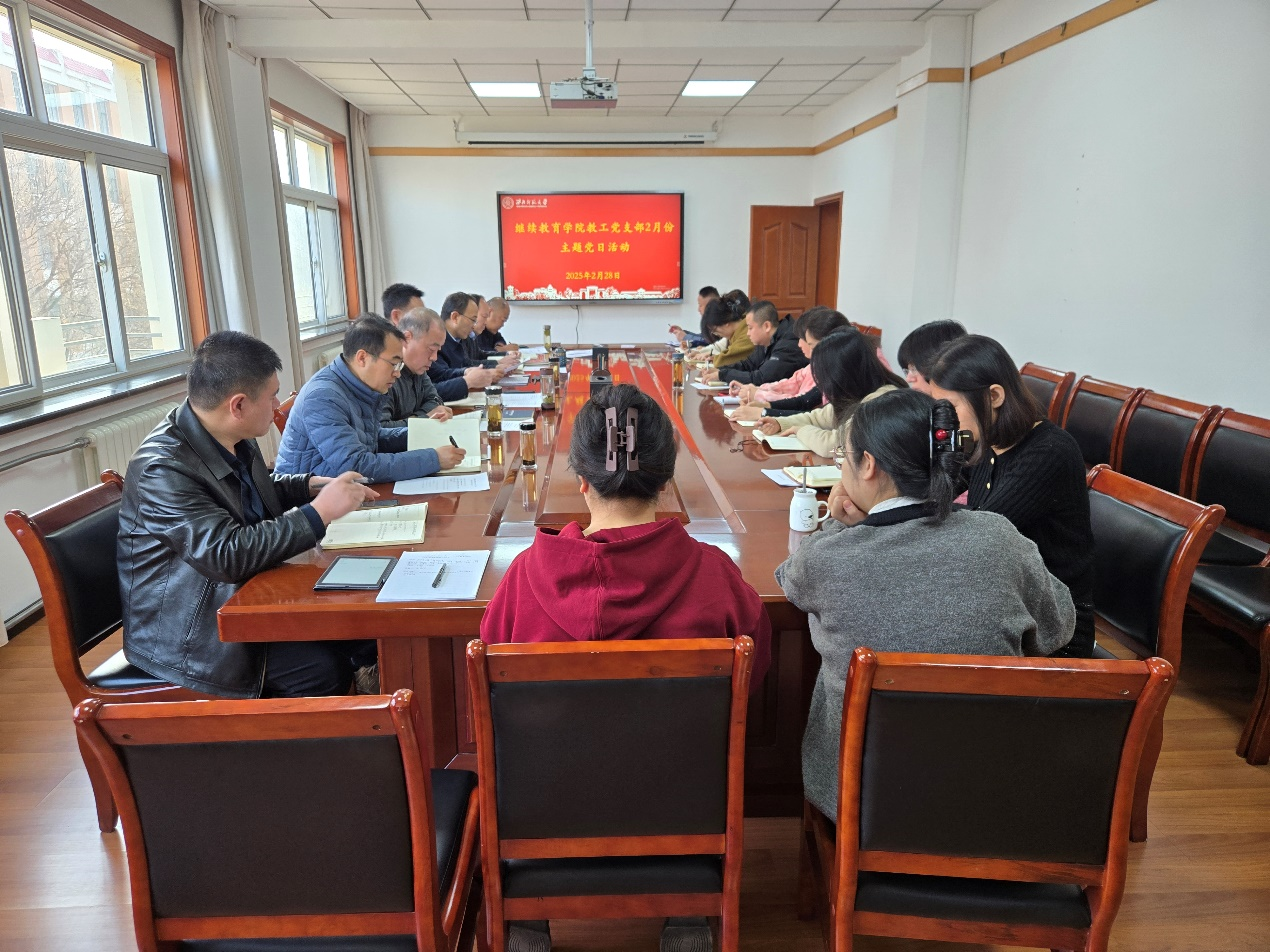 根据学校党委部署要求,2025年2月28日上午,继续教育学院教工党支部召开组织生活会和民主评议党员大会。会议以“深入学习贯彻习近平新时代中国特色社会主义思想,巩固深化党纪学习教育成果,综合发挥党的纪律教育约束、保障激励作用,为进一步全面深化改革、推进中国式现代化提供坚强纪律保证”为主题,支部委员、全体教工党员参加会议,入党积极分子列席大会。