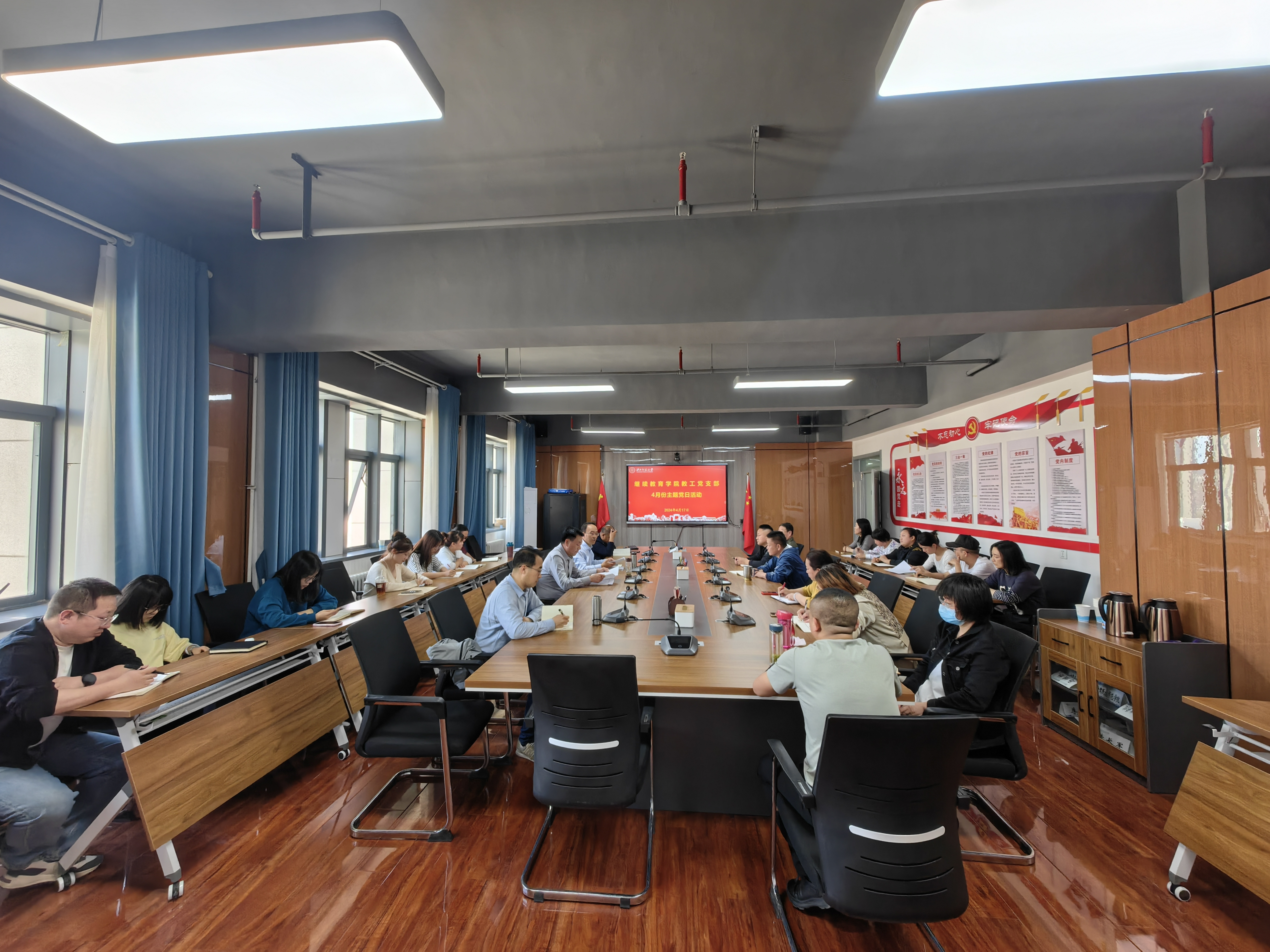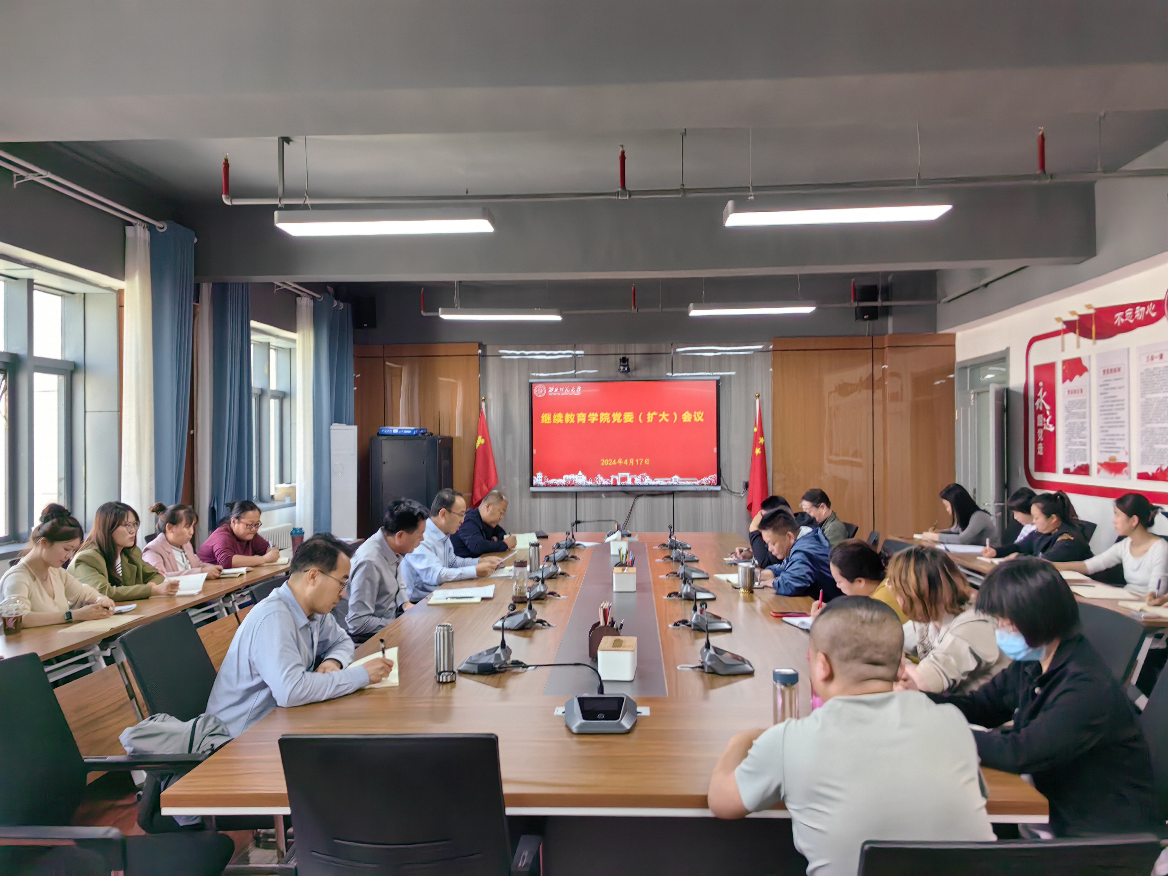 4月17日,继续教育学院召开党委(扩大)会议,深入学习贯彻习近平总书记关于党纪学习教育的重要讲话和重要指示精神,传达学习学校党委党纪学习教育有关会议精神,按照党中央部署要求和学校党委工作安排,部署启动学院党纪学习教育工作。