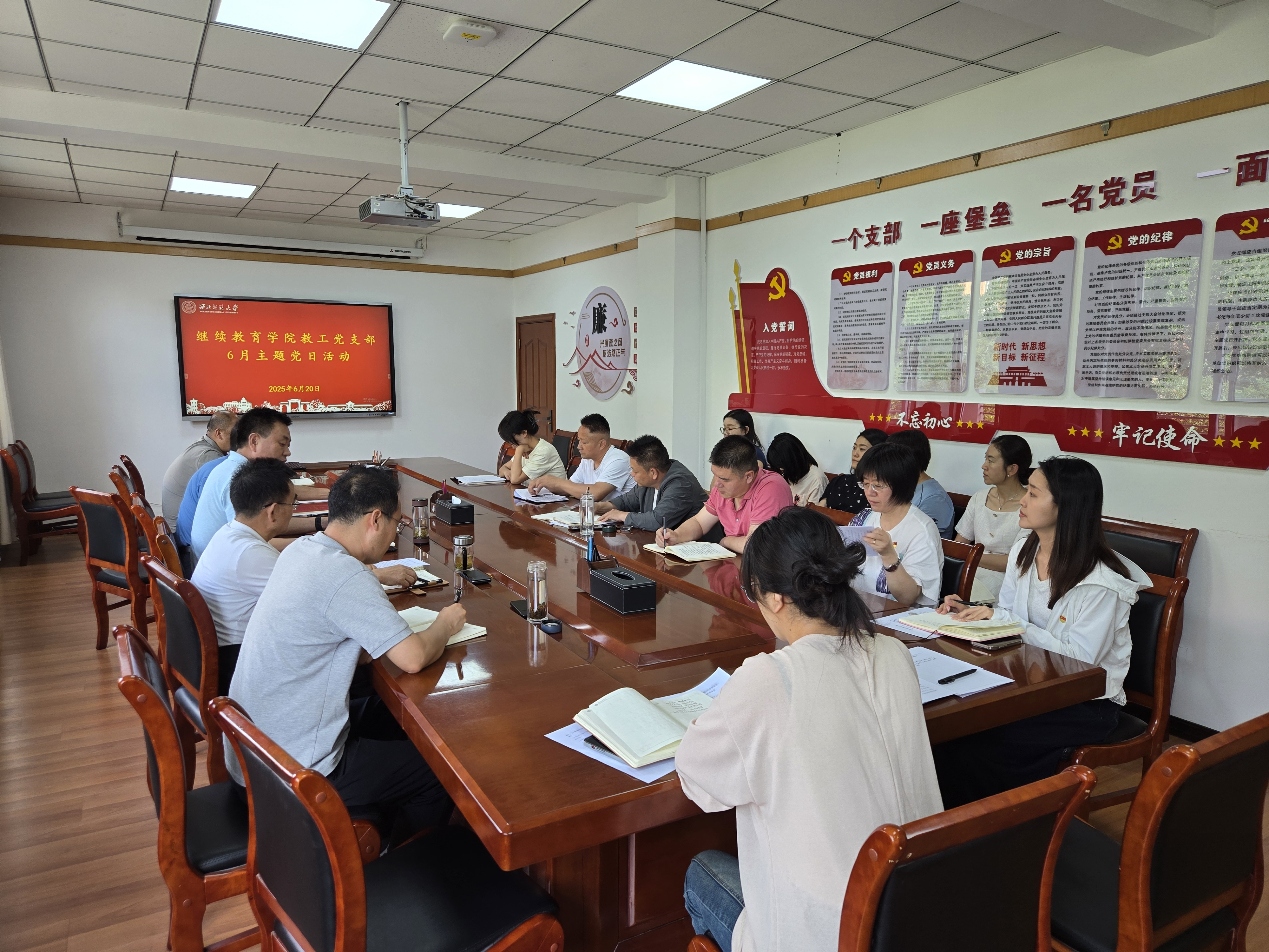 在全党开展深入贯彻中央八项规定精神学习教育的重要阶段,6月20日下午,继续教育学院教工党支部组织全体党员和入党积极分子召开研讨交流会,研讨交流以“落实八项规定精神 加强党的作风建设”为主题,全体党员结合党员基本培训第一次集中大课内容,结合思想实际、学习生活、工作情况进行了研讨交流,推动学习成果内化于心、外化于行。