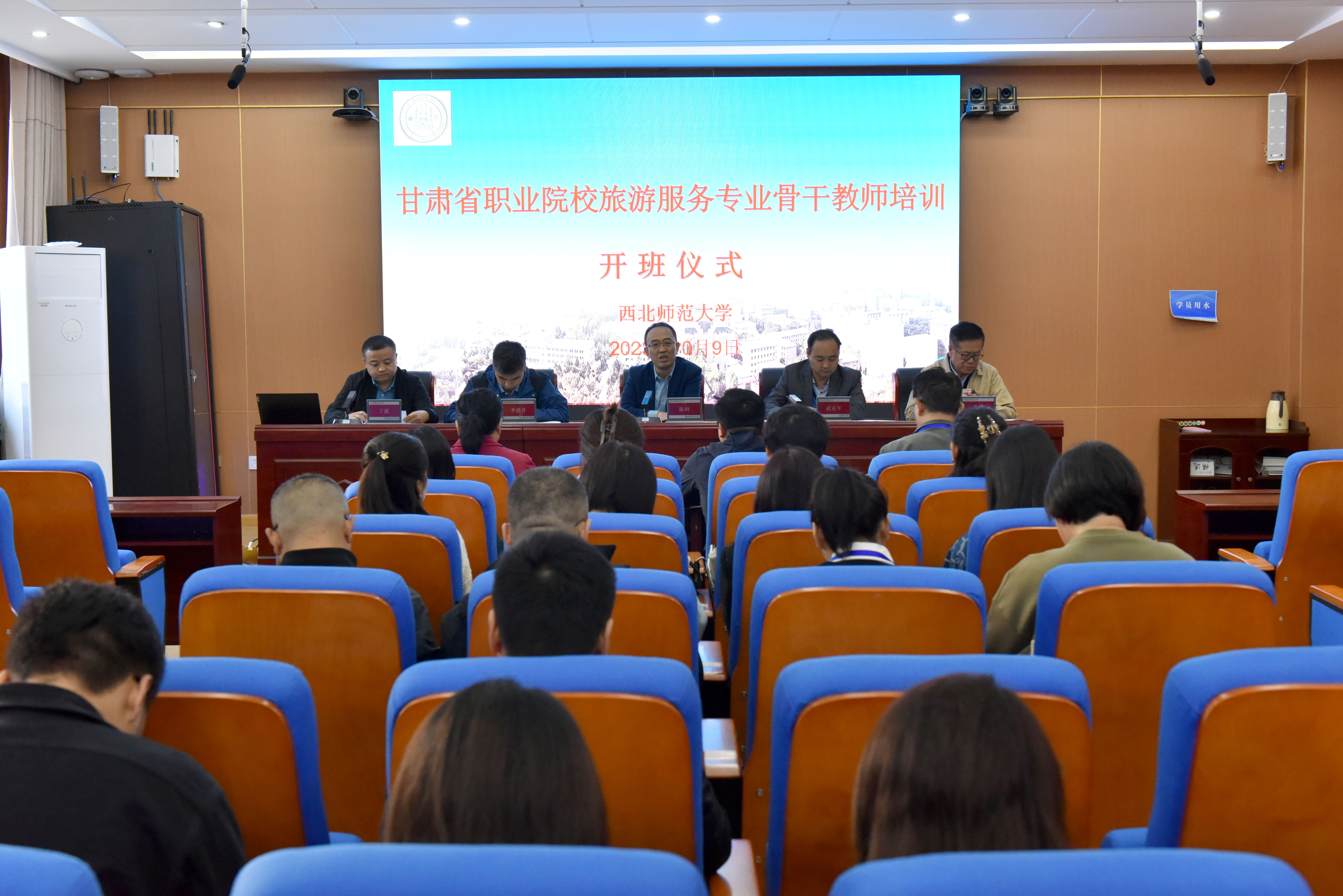 10月9日上午,甘肃省职业院校旅游服务专业骨干教师培训班在西北师范大学知行校区举行开班仪式。西北师范大学继续教育学院党委书记陈科、副院长李建升、旅游学院副院长武克军出席开班仪式,来自甘肃省各职业院校50余名骨干教师参加开班仪式。