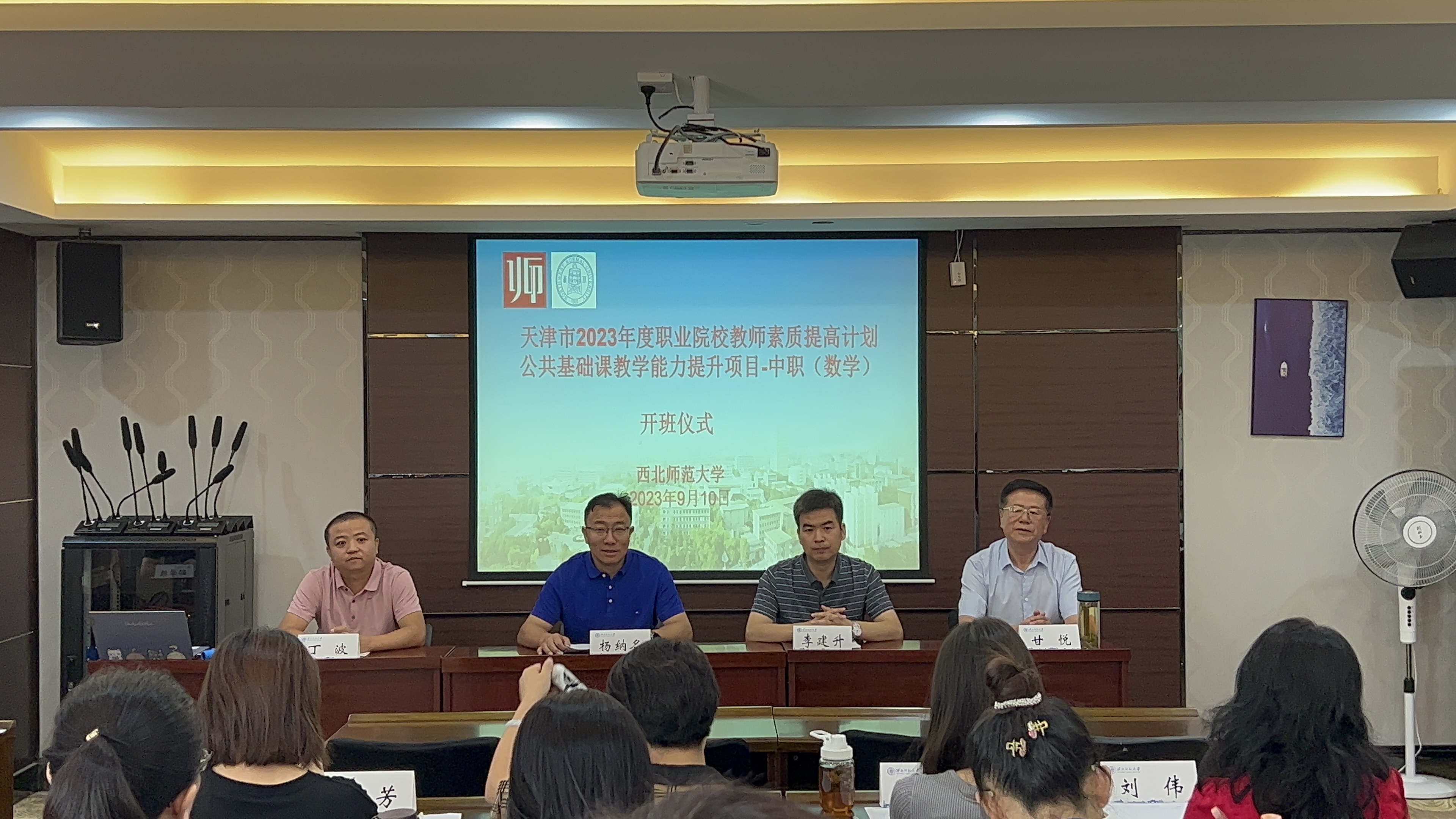 2023年9月10日上午,天津市2023年度职业院校教师素质提高计划公共基础课教学能力提升项目——中职(数学)开班仪式在西北师范大学顺利举行。西北师范大学继续教育学院院长杨纳名、副院长李建升出席开班仪式,天津市2023年度职业院校参加培训的25名教师以及我院培训中心相关负责人参加开班仪式。