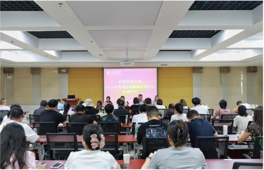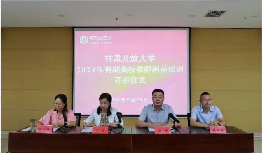 8月13日上午,全省开放大学系统2024年新入职教师岗前培训班在甘肃开放大学开班。甘肃开放大学副校长丁霞,西北师范大学继续教育学院院长、甘肃省高等学校师资培训中心办公室主任赵辉出席开班式并讲话。西北师范大学继续教育学院、甘肃开放大学有关部门负责同志参加开班式。